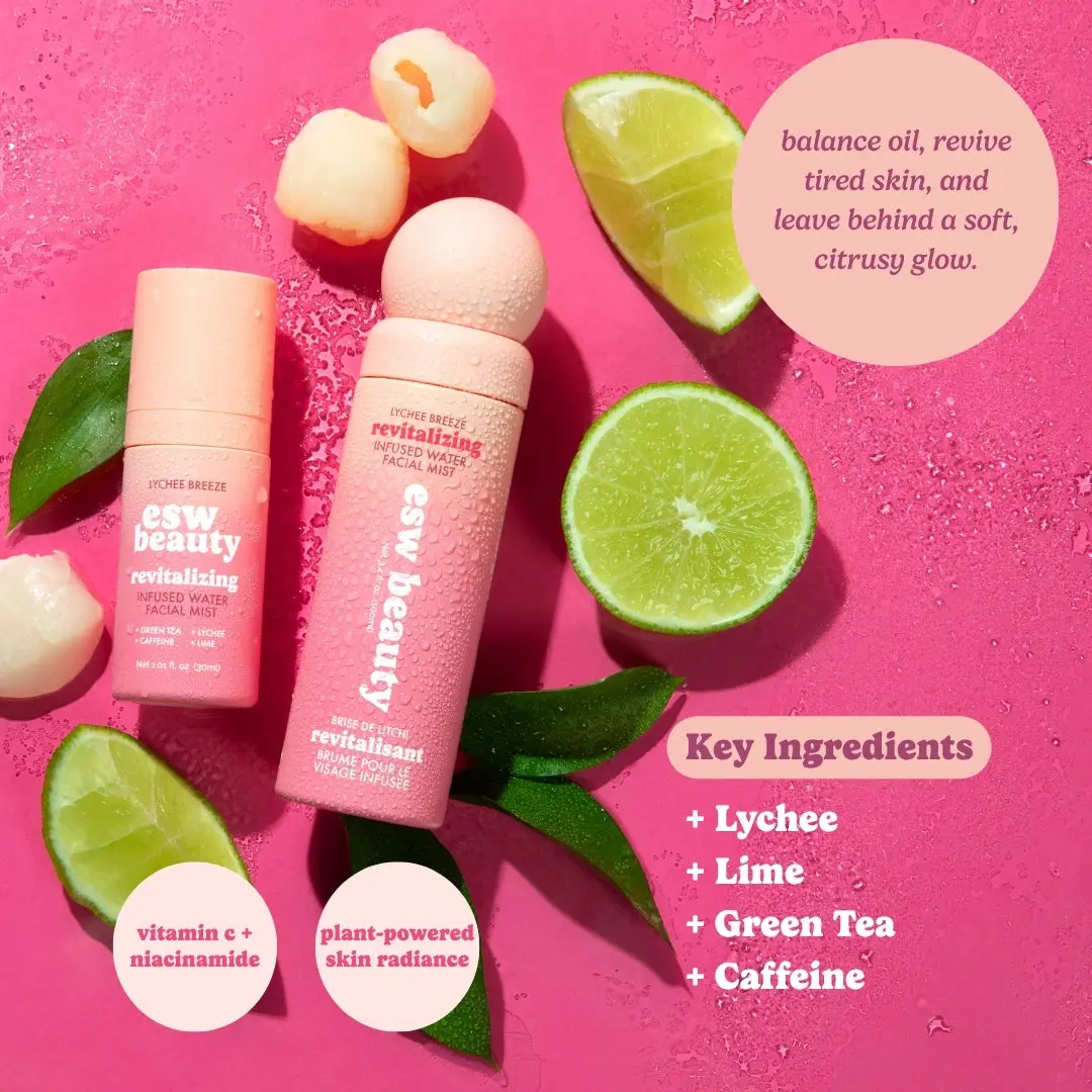Inspired by fruity-fresh infused waters: Refresh, hydrate, and glow on-the-go with Facial Mist Minis, a travel-sized duo of our fruit-infused water facial mists. Inspired by the feel of fresh, fruity hydration, each fine-mist spray is packed with targeted, skin-loving ingredients to tone, soothe, and energize—wherever your day takes you.