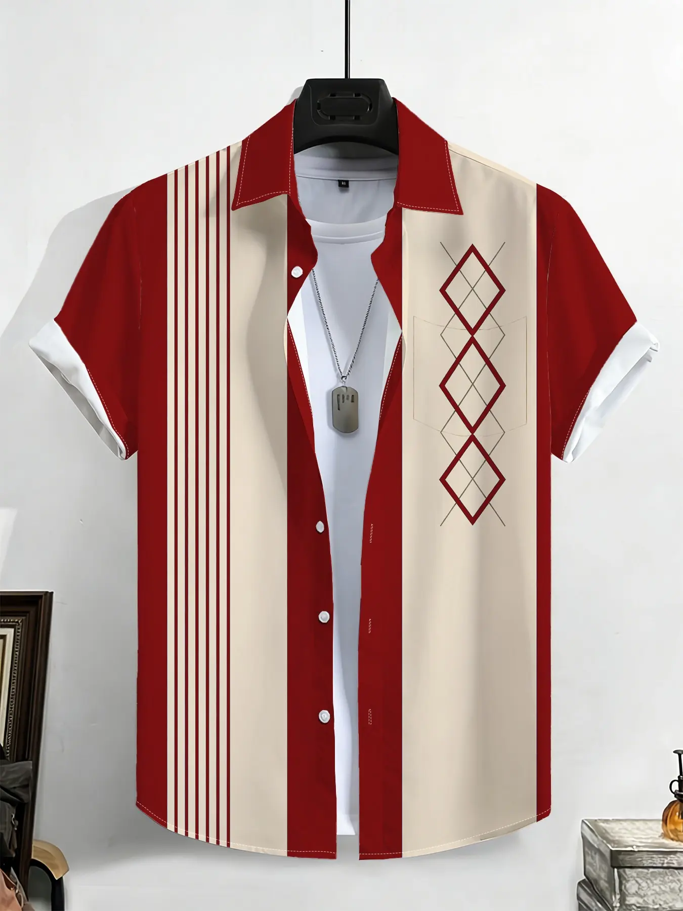【Unique Pattern】: Stand out with the all-over print featuring red and white block plaid stripes.