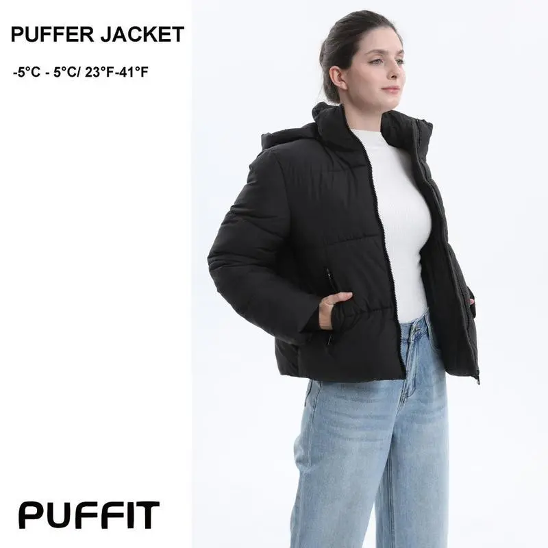 【Clearance Sale】[SIZE 2-20]Women's Fitted Detachable Hooded Puffer Jacket, Winter Basic Warm Coat with Removable Hood Zip Deep Pockets for Women