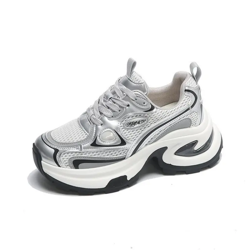 2026 versatile silver dad sneakers for women, new autumn model, added to the versatile sports shoe category, height-increasing casual shoes for students, unisex