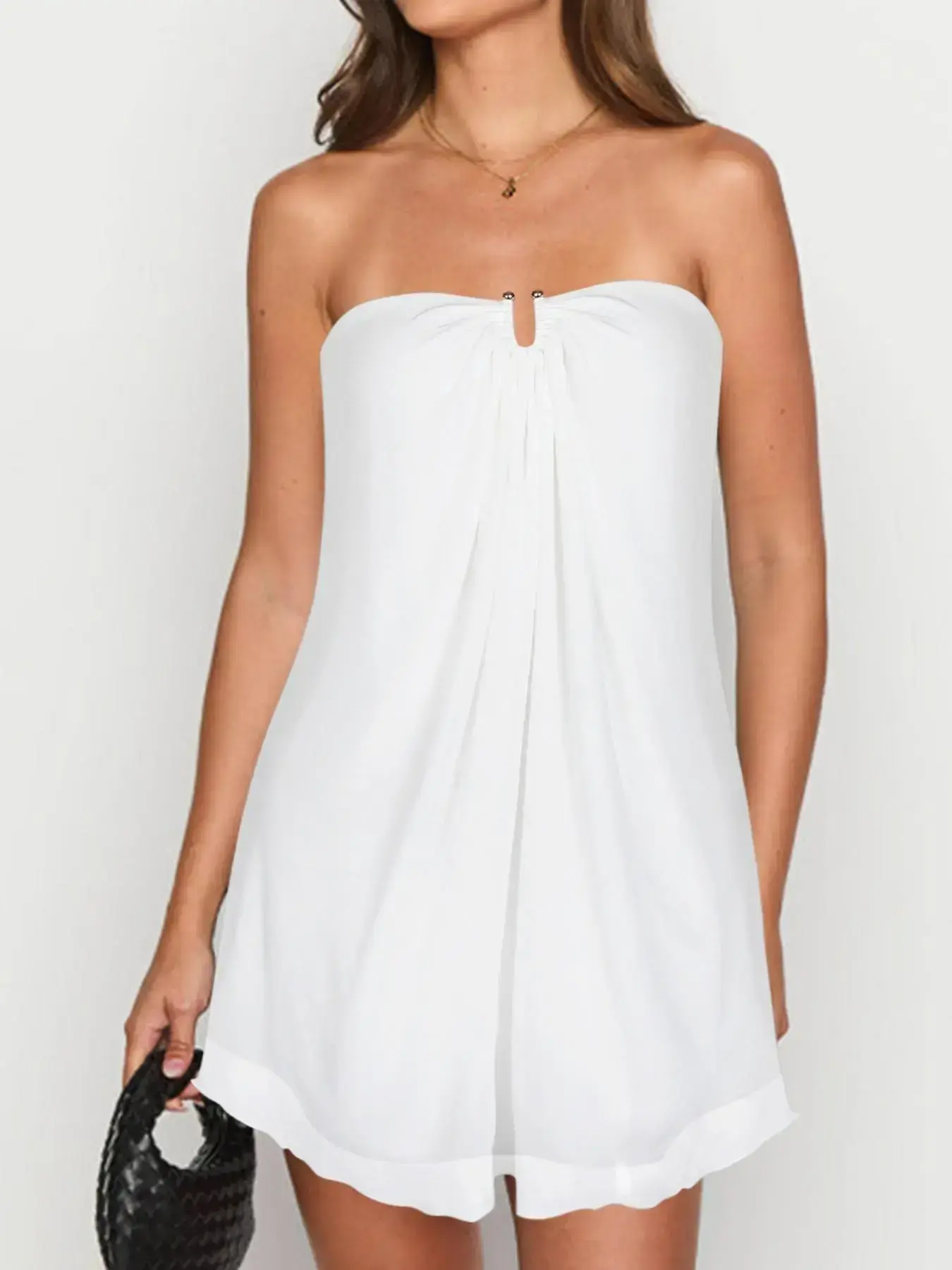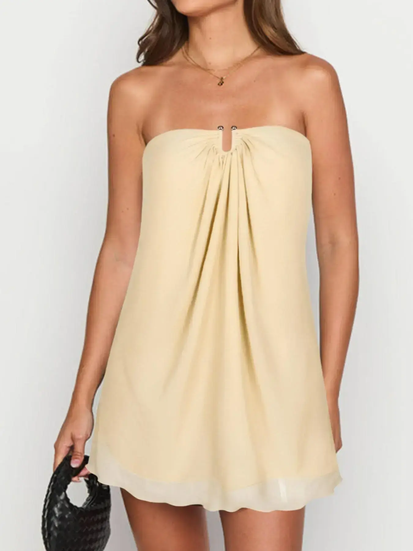 Women's Solid Color Tulle Overlay Tube Dress, Sexy Fashion Casual Strapless Short Dress for Party Club Dating Wear, Ladies Dress for All Seasons Womenswear
