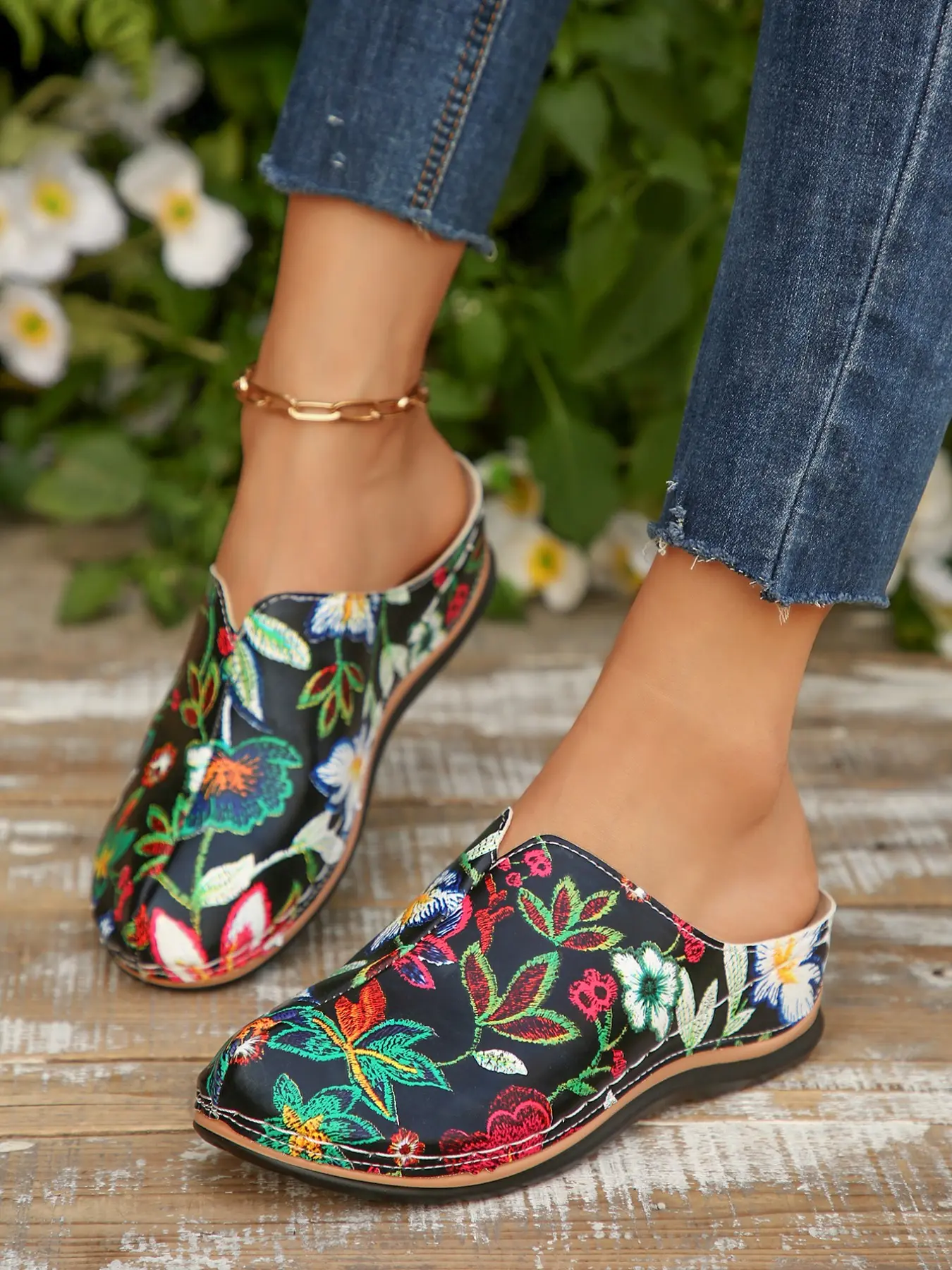 Vintage Floral Print Slip-On Mules, Rubber Sole Anti-Slip Durable, Easy One-Step On/off, Perfect for Commute, Streetwear, Vacation