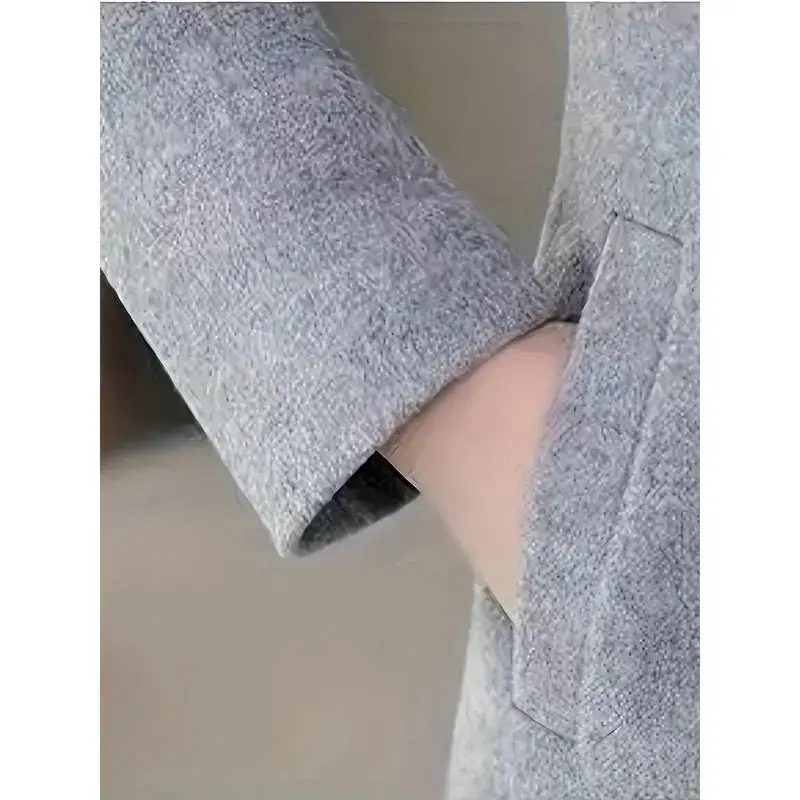 Double Breasted Lapel Longline Jacket,Elegant Long Sleeve Pockets Simple Slim Overcoat For Fall & Winter, Women's Clothing Chic Womenswear Polyester Can be used with raincoat