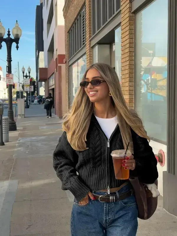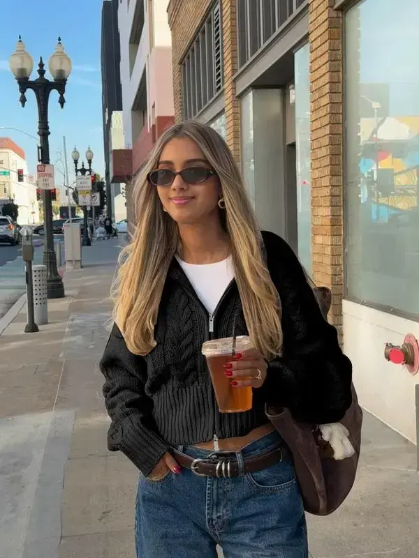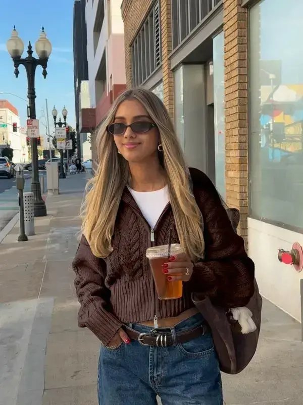 Autumn And Winter New Vintage Big Lapel Double Head Zip Twisted Knit Cardigan, Loose Drop Shoulder Casual Jumper, Short Daily Commuting,Teacher Outfit,Airport Outfit Jumper Tops