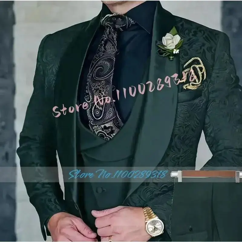 JacquardMen's3-pieceSuitSetFormalPartyDressGroomTuxedoHighQualityElegantMenTernoMasculinoCostumeHommeMariage Menswear Sleeve