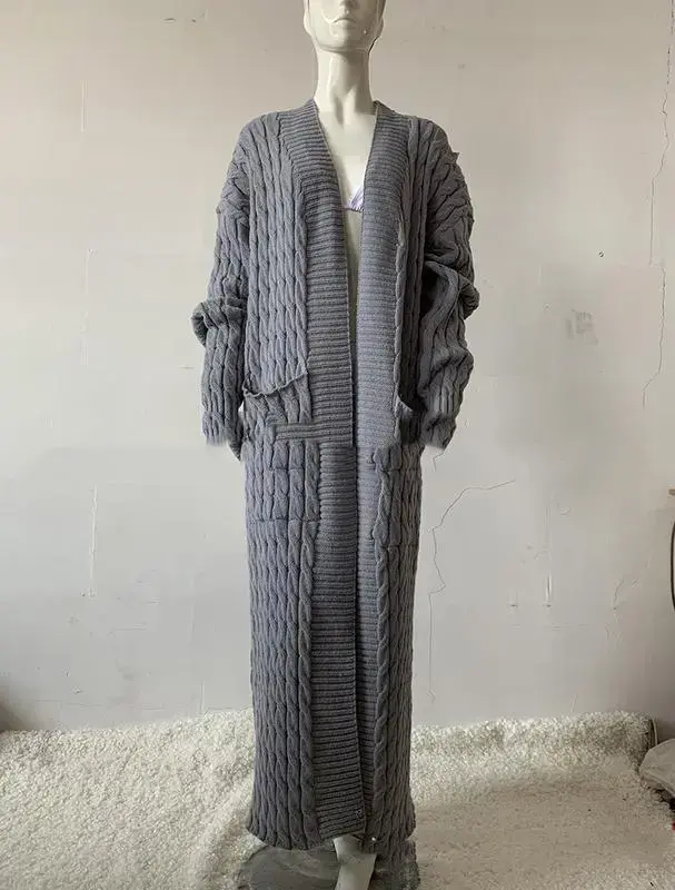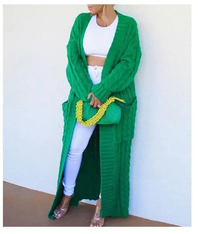 Womens Long Cardigan Sweater Open Front Long Sleeve Chunky Cable Knit Duster Outerwear Maxi Fall Jacket Coats Knitwear Womenswear Longsleeves Tops
