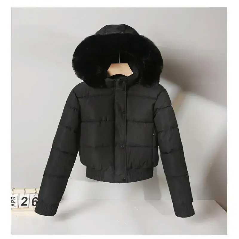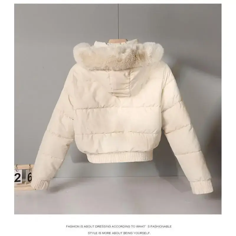 Women's Zip Up Pocket Design Shirred Waist Jacket Fuzzy Trim Fleece Lined Hooded Puffer Coat Windproof Jackets