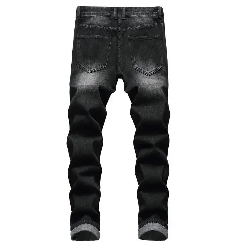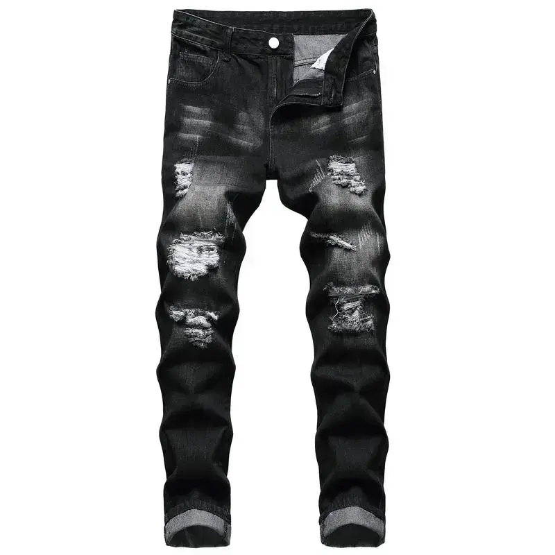 Material: Cotton Composition: 90% Cotton,7% Polyester,3% Other Fibers Length: Regular Details: Ripped Pattern: Solid color Applicable People: Men Sheer: No Fabric: Slight Stretch Type: Slim Season: All-season Operation Instruction: Machine wash, do not dry clean Style: Street Fit Type: Skinny Weaving Method: Woven Item: FL 128285 Origin: Guangdong,