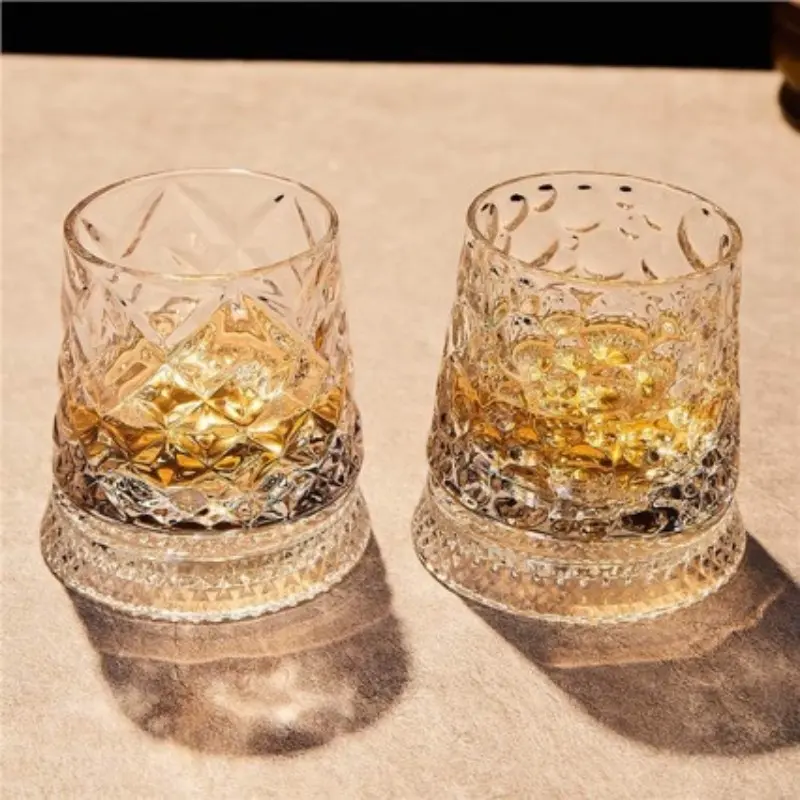 Luxury Whiskey Glass Rotating Cup, Crystal Glass Wine Cup, Home Use Beer Mug, High-End Barware, Elegant Drinkware for Special Occasions