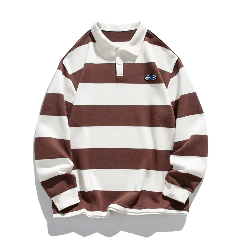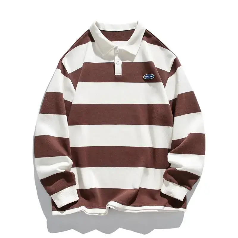 Couples Unisex Striped Polo Loose Fit Double Jersey Spring Fall Outdoor Daily Wear Comfortable Fashion Trendy Fabric Long Sleeve vintage style unisex White Men's Performance hoodie sleeve dark romance game day style heavyweight cotton meme shirt