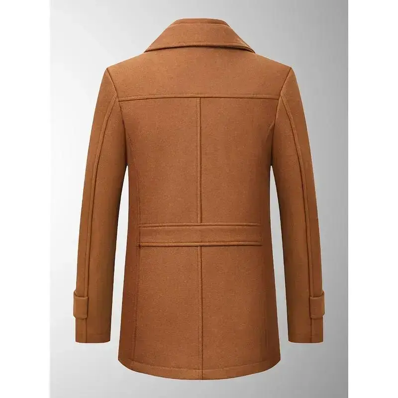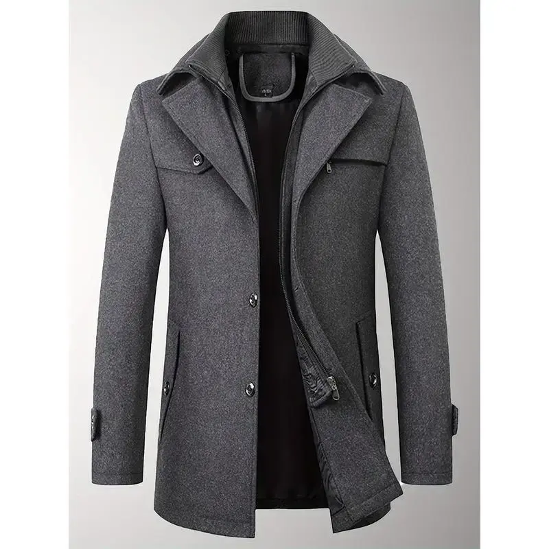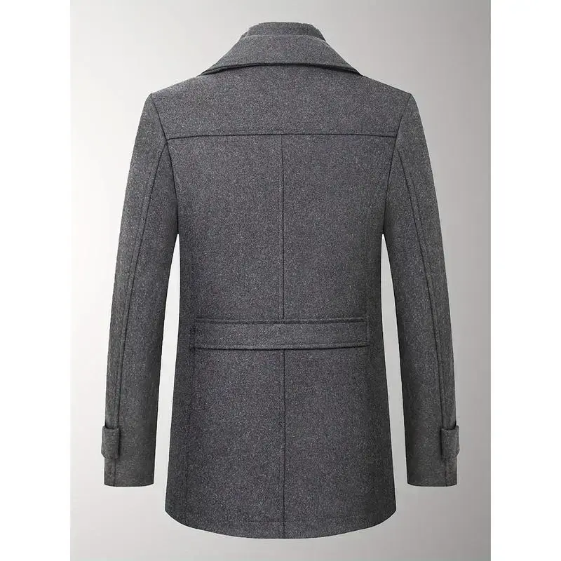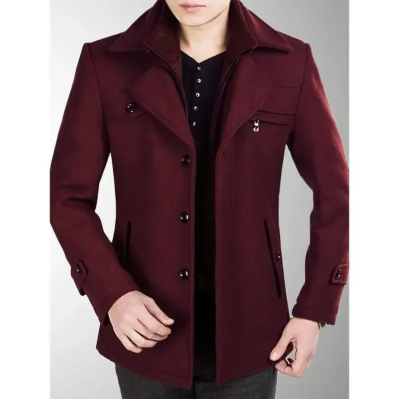 Men's Wool Blend Double Collar Pea Coat ✨ Stay Warm and Stylish ✨ This men's wool blend pea coat features a double collar and removable collar for versatile wear. It's a casual thermal trench coat, perfect for winter. The coat is thick and warm, ensuring you stay cozy. Available in black, grey, burgundy, and earth-yellow. Sizes range from S to XXL. Choose from sizes S, M, L, XL, and XXL. This coat is designed for comfort and style, making it a versatile addition to your wardrobe. 🌟