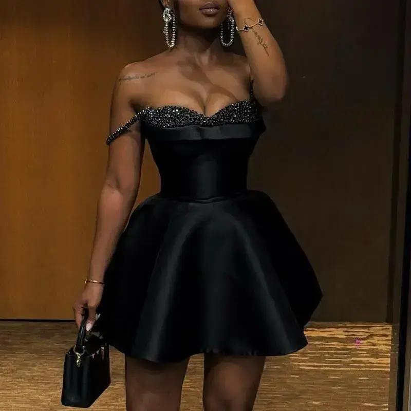 Product Name: Spring New Elegant Sequin - Patchwork Strapless Thin Strap Mini Dress/Product Description:🌟Unique Design Highlight for Spring This Year - Exclusive Dress Exudes Elegance and Charm.The Strapless Design Perfectly Shows Off Your Collarbone and Shoulders, while the Sequin Patchwork on the Chest Creates a Dazzling Focus.The Single-Sided Thin Strap Adds Fashion and a Unique Touch, Making It a Highlight for Any Event/🌟High-quality fabric and comfort are made from premium materials, ensuring a snug fit and smoothness.The elegant drape is perfect for spring weather, allowing you to maintain fashion with ease/🌟Size Details/S: Bust 88cm / Length 85cm / Waist 74cm / Weight 0.400kg/M: Bust 92cm / Length 87cm / Waist 78cm / Weight 0.415kg/L: Bust 96cm / Length 89cm / Waist 82cm / Weight 0.430kg/XL: Bust 102cm / Length 91cm / Waist 88cm / Weight 0.450kg/2XL: Bust 108cm / Length 93cm / Waist 94cm / Weight 0.480kg *Note: The measurements are taken manually, there may be a deviation of 1- 3cm percent/🌟Suitable for various occasions, perfect for spring parties, romantic dates, or special gatherings Pair with high heels and a unique clutch bag to enhance your elegance and always shine!