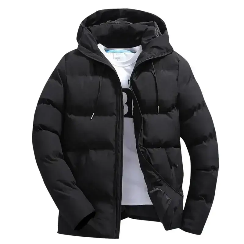 Men's oversized hooded padded jacket - autumn and winter thick solid color casual cotton jacket