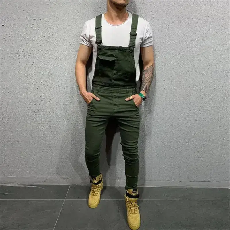 baggy sweatpants men Men's Denim Dungaree Bib Overalls Jumpsuits Moto Biker Jeans Pants Trousers Plus Size Mens Casual Overalls