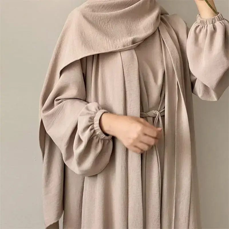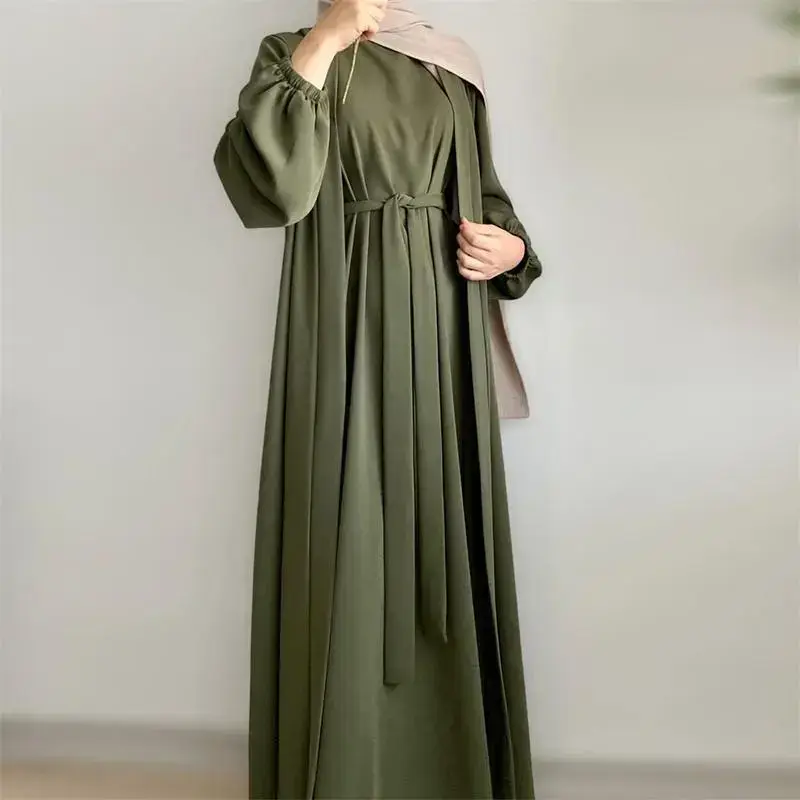 New Set Crinkle Fabric Open Inner Long Dress Islamic Clothing Muslim Women Dresses Set Turkish Kaftan Ramadan Eid summer two pieces et Hijab Maxi Casual