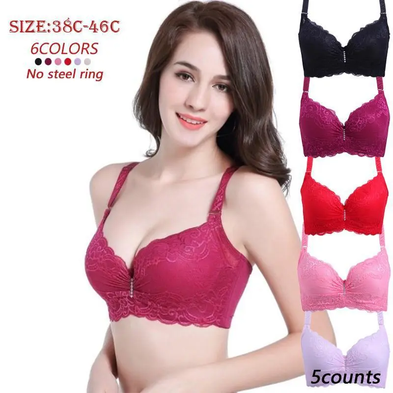 Plus Size Solid Color Lace Bra Women's Lingerie for Daily Wear Breathable Adjustable Strap Push Up Bra 38C-46C Minimalist Vneck Basic Black Burgundy Big Red Pink Apricot Womenswear Casual