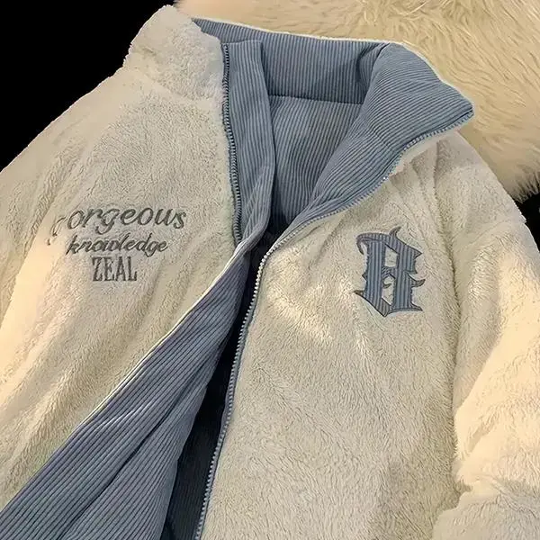 Reversible Stand Collar Jacket DQC5301, Unisex And Versatile, Made of Corduroy, Featuring an Elastic Hem And Cuffs, a Structured Stand Collar, Trendy And Unique Design, Comfortable Movement, New Arrival for The Season, Soft And Skin-Friendly Fabric(gift)