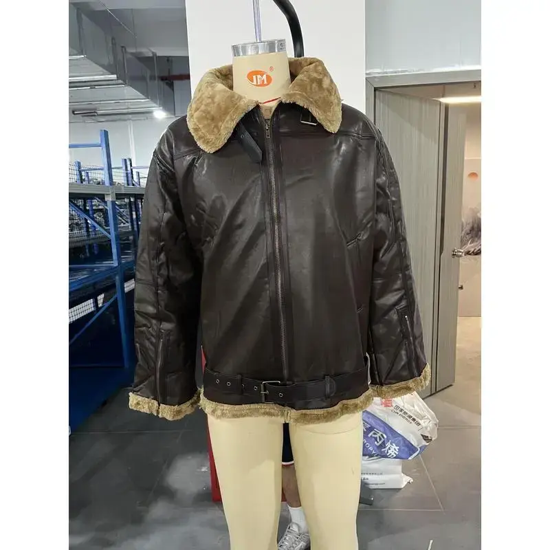 Mens Bomber Jacket Vintage Faux Fur Coat Sherpa Lined Heavyweight Shearing Coat Faux Leather Jackets