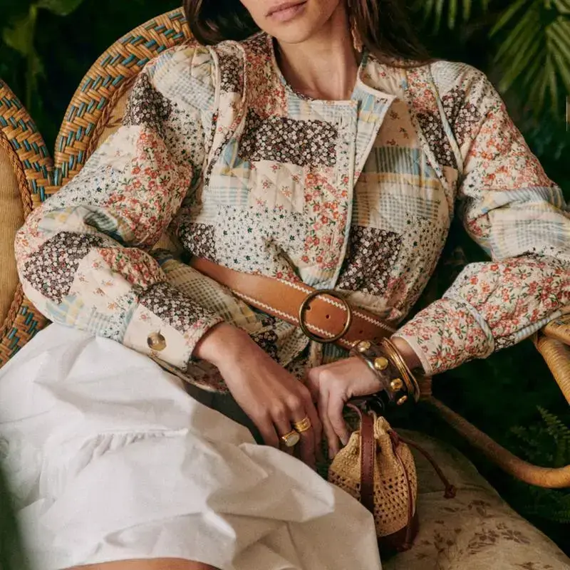 Women Fall Quilted Jacket, Lightweight Floral Print Casual Long Sleeve Button Cardigan, Ladies Outwear Streetwear, Ladies Clothes for Indoor Outdoor Wear, Ladies Clothes for Daily Wear