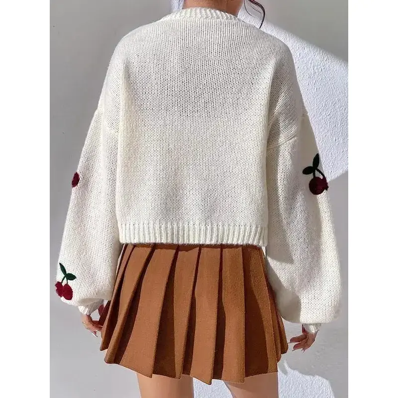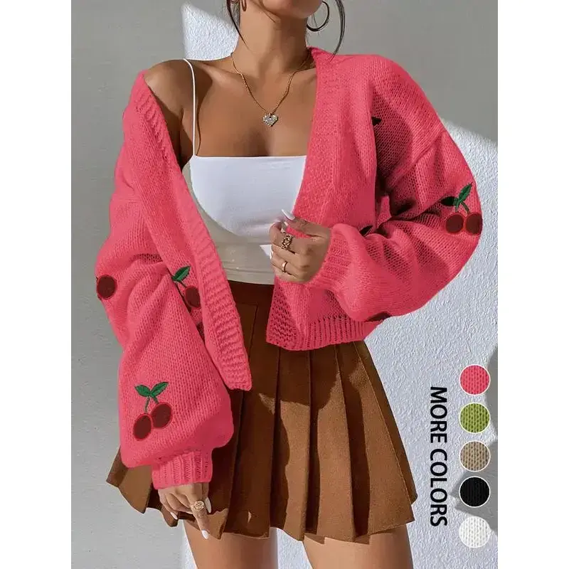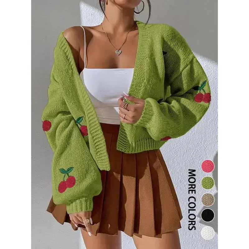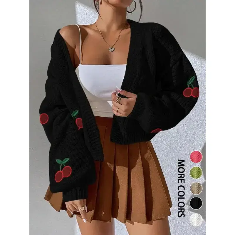 【Cherry Embroidery】: Features unique cherry embroidery, adding a distinct visual element to your fall and winter wardrobe. 【Loose Fit】: Designed to be loose-fitting, this cardigan provides ease of movement and added layering options for colder days. 【Moderate Thickness】: Constructed with moderate fabric thickness, offering warmth without excessive bulk, making it easy to layer. 【Seasonal Versatility】: Tailored for fall and winter, it is suitable for transitional weather, keeping you cozy during seasonal changes. 【Sweater Fabric】: Made from comfortable sweater fabric, ensuring a soft, warm feel against the skin during cooler months.