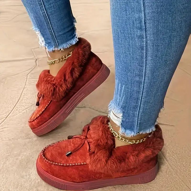 Women's Fluffy Furry Snow Boots ✨ Elevate your winter style with these Women's Fluffy Furry Snow Boots. Crafted with a solid color bowknot, these ankle boots offer plush lining for warmth. Perfect for chilly days, the flat bottom design ensures comfort. Ideal for girls, these booties combine functionality with fashion. 🧣 These boots are made from a combination of fabric and TPR. The fabric upper and TPR sole provide a comfortable and durable wear. The solid color design adds a touch of elegance to your winter outfit. 🌟