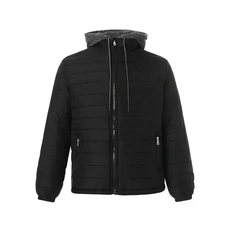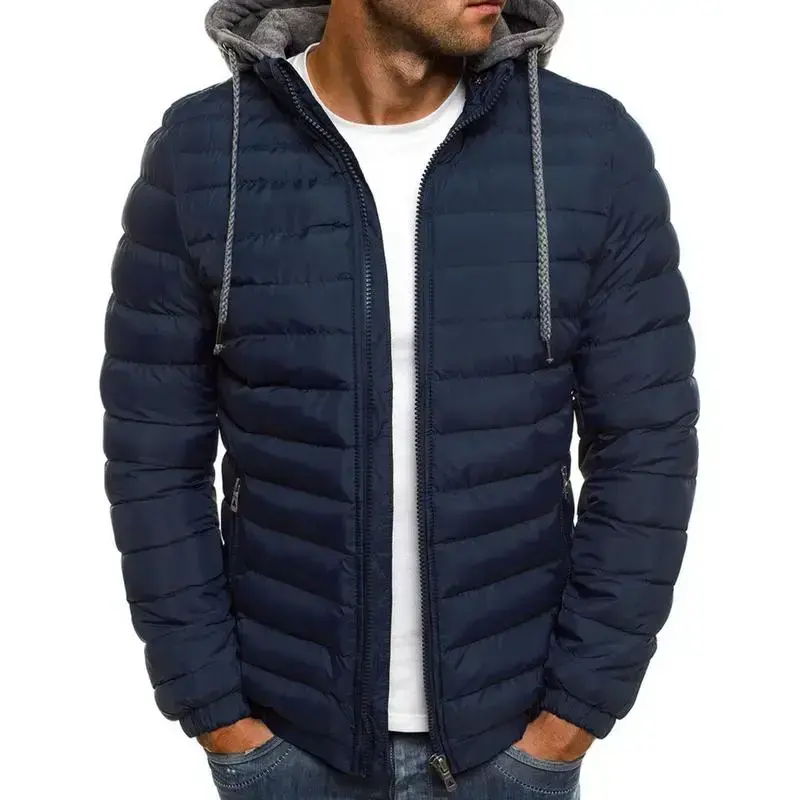 Men Winter Down Jackets & Coats Long Sleeves Solid Color Zip-Up Puffer Hooded Coats with Pockets
