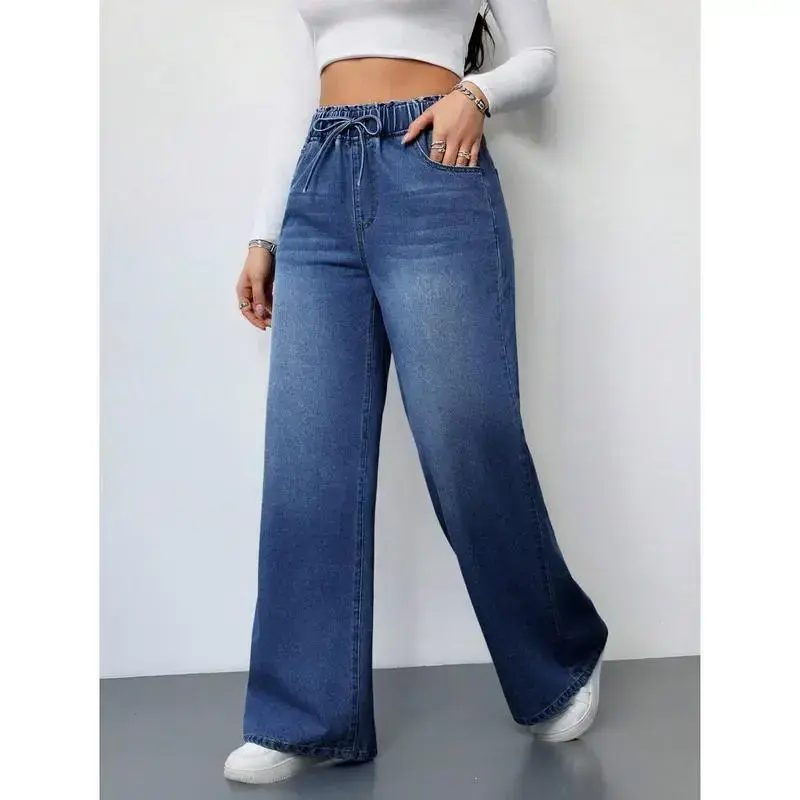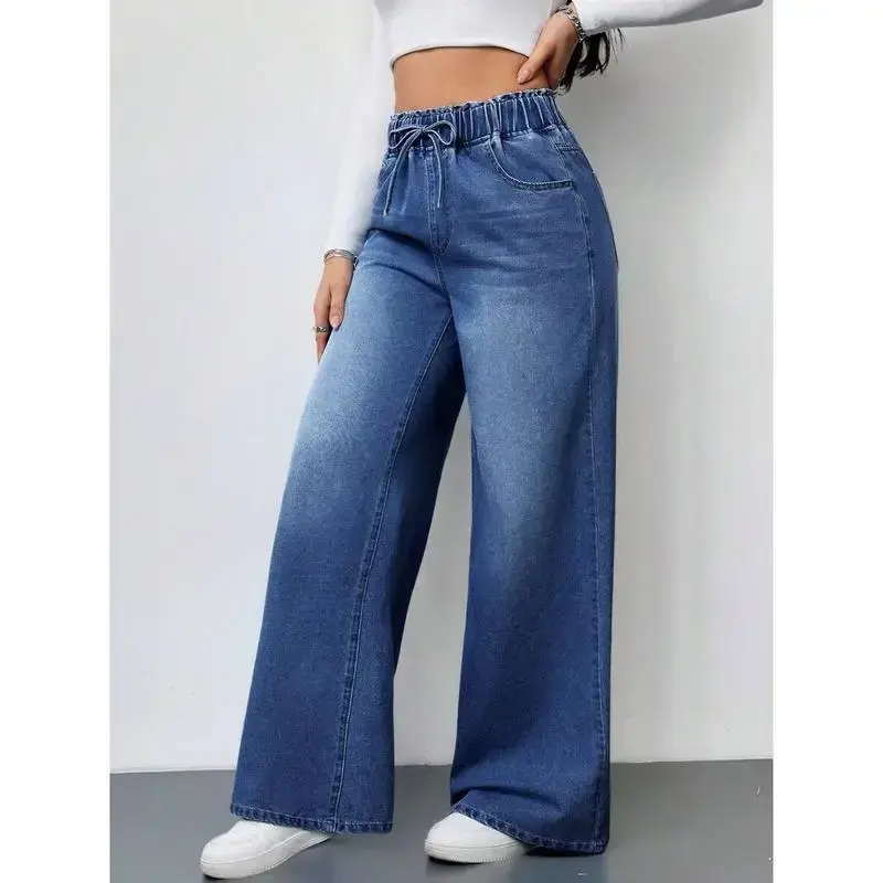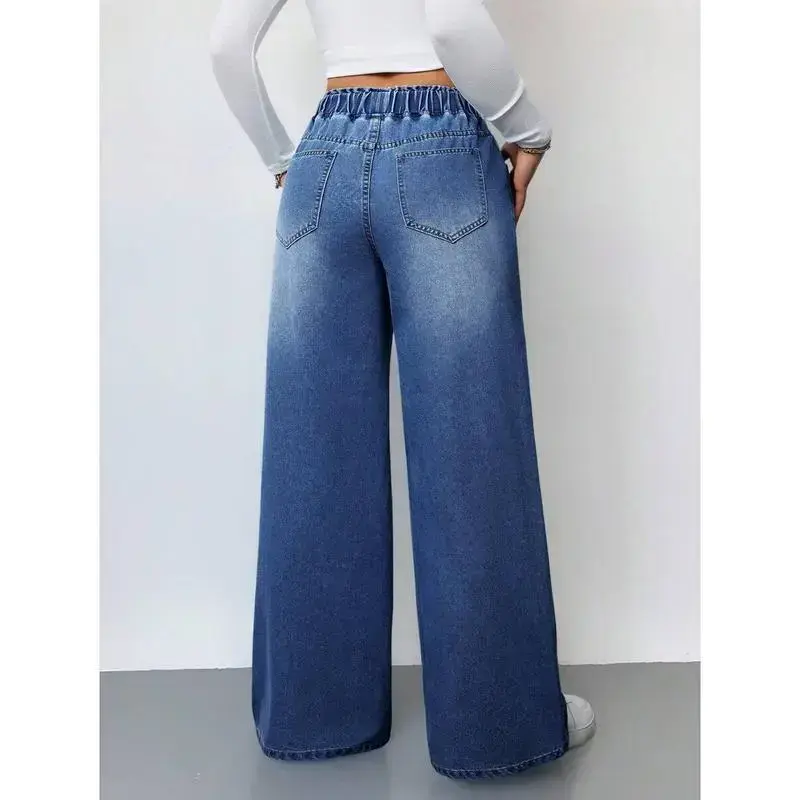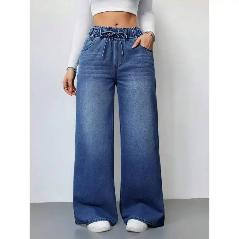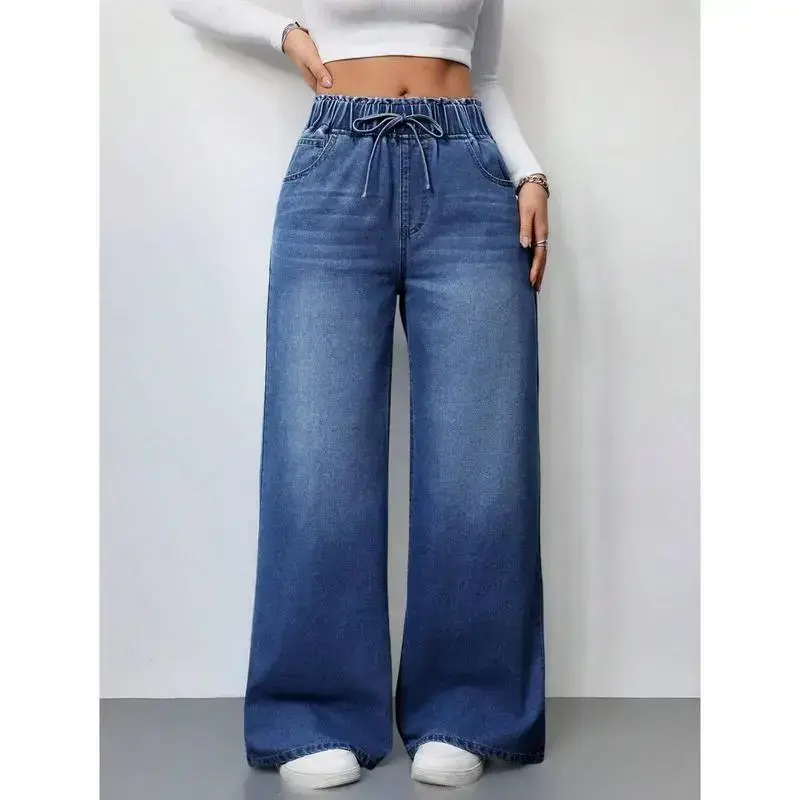 Women's Jeans Casual High Waist Wide Leg Trousers Blue Women's Jeans Women's Summer Clothing Elastic Waistband Jeans Jeans Casual Loose Straight Pants
