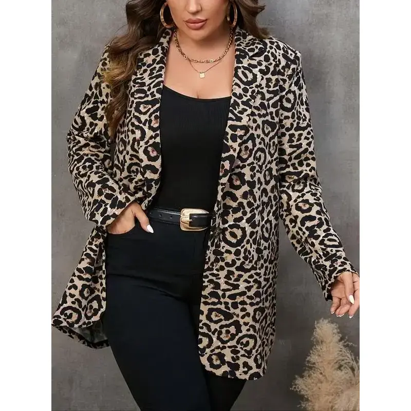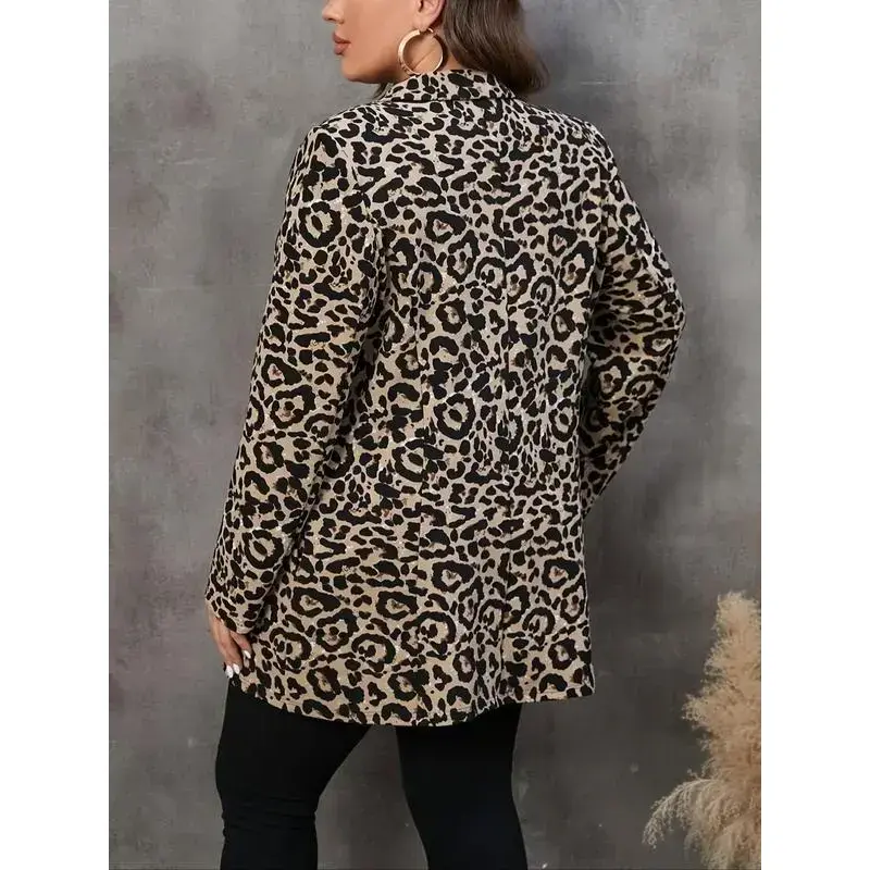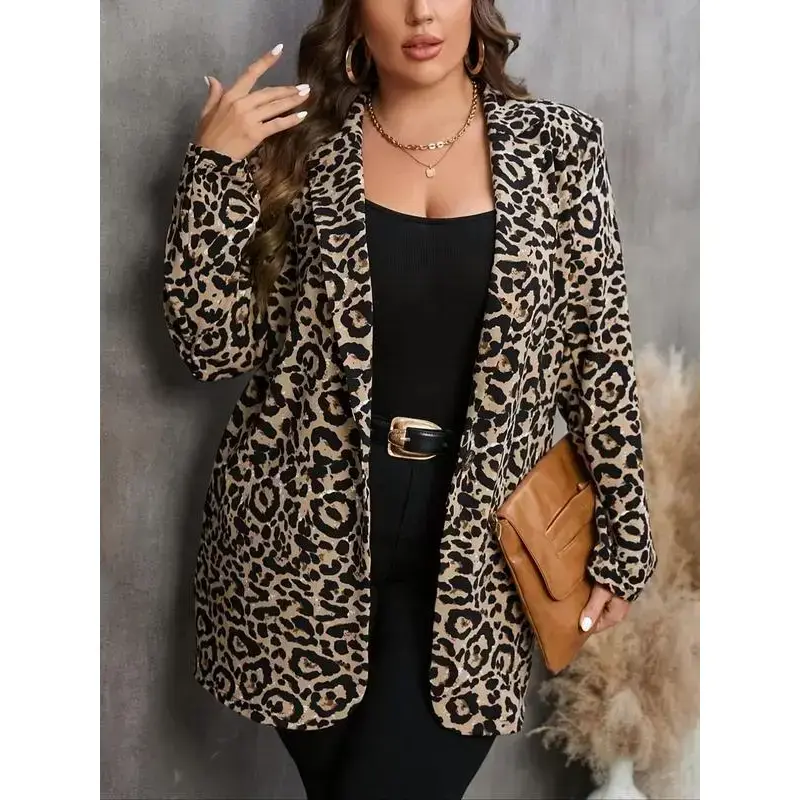 Leopard button front collar casual long sleeved autumn/winter outdoor sportswear, women's daily wear