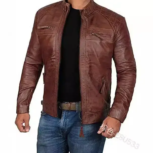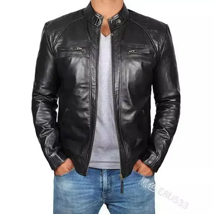 2025 Men's Leather Jacket for Teenagers Stand Collar Punk Motorcycle Leather Jacket E8U533