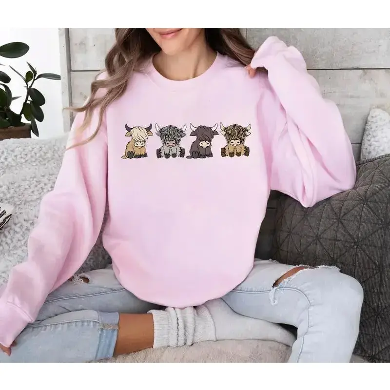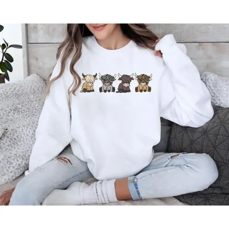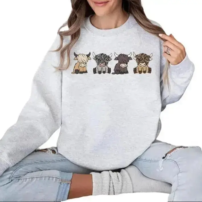 Sweatshirt, cute cow sweatshirt, western round neck, cow gift suitable fabric for both men and women, western round neck