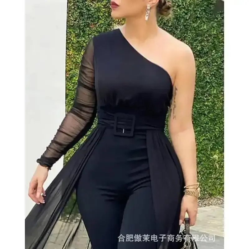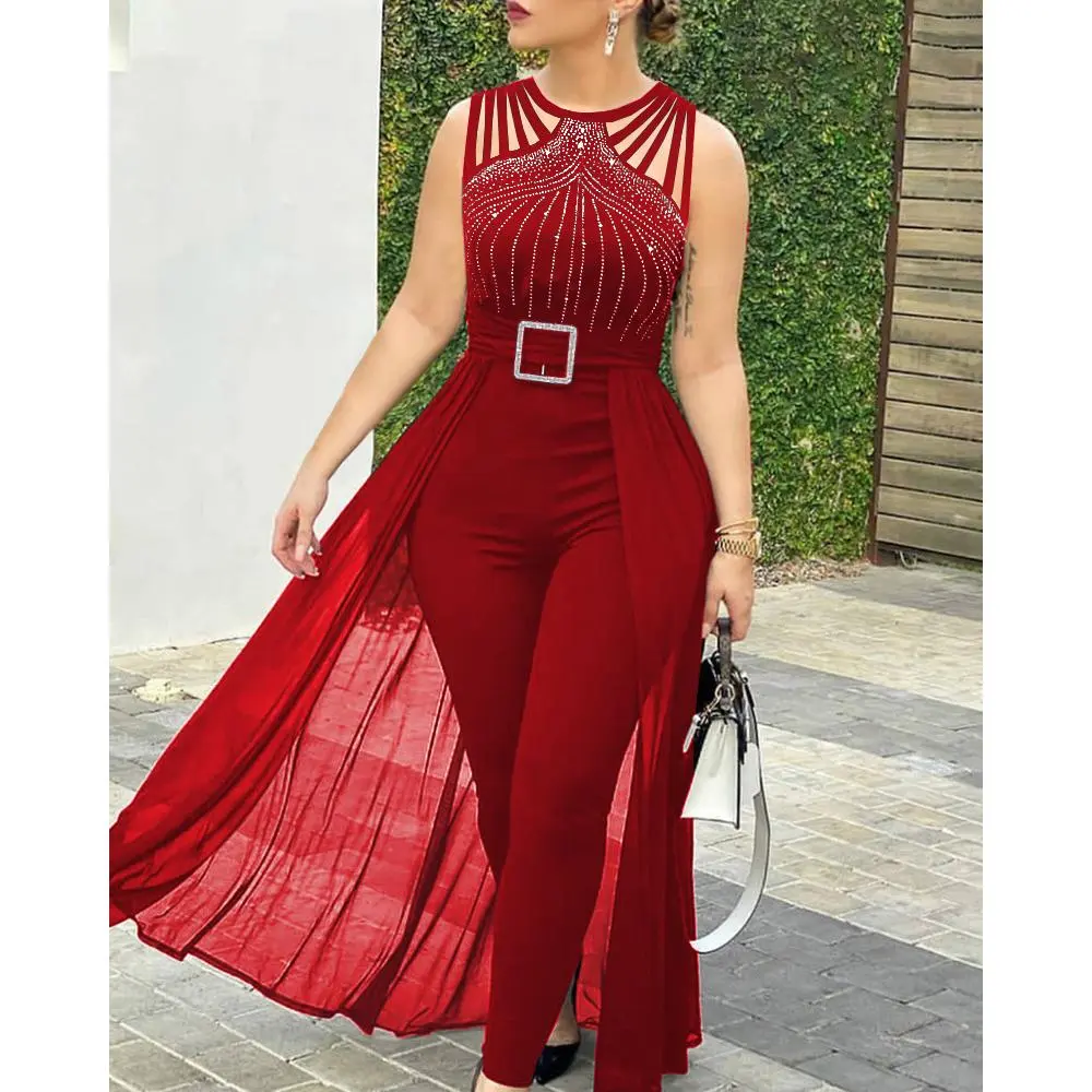 Jumpsuit for Women Party Casual Rhinestone Mesh Sleeveless Jumpsuits Skinny Outfits Ladies Suit