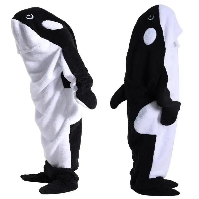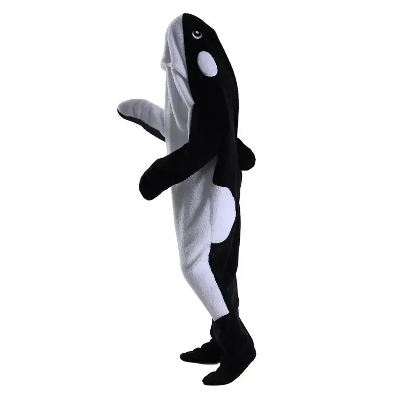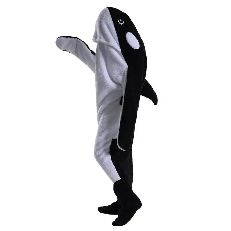 Wearable Shark Blanket Onesie For Adult Hoodie Super Soft Comfortable Costume Black Whale M