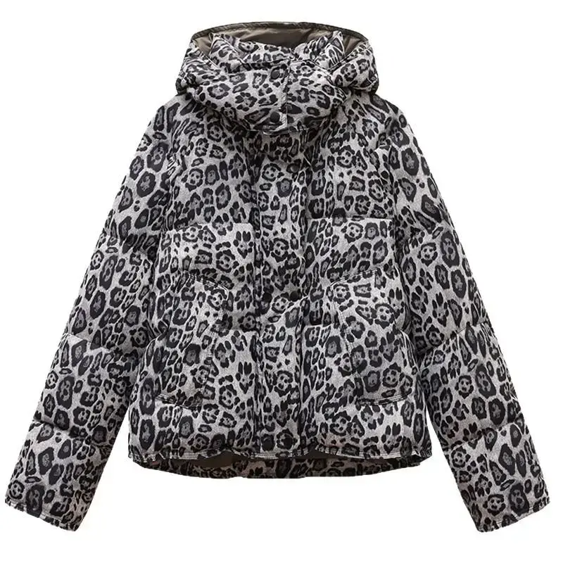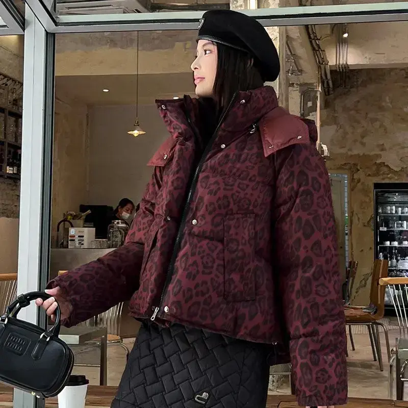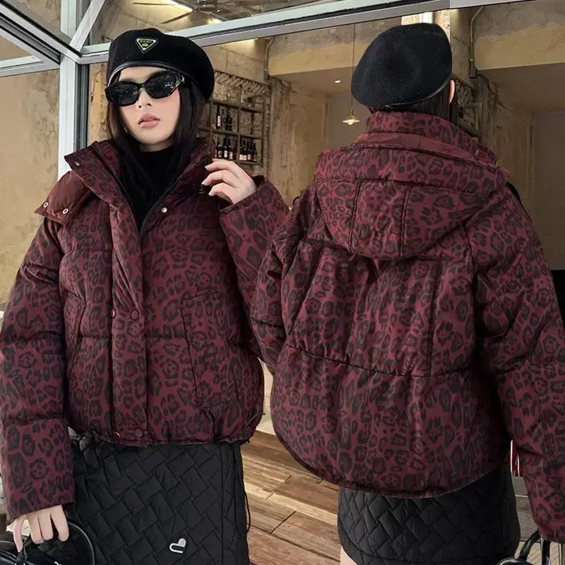 Leopard Print Puffer Jacket Down Cotton Coat Women Short Thick Loose 2025 Winter Cotton Outerwear