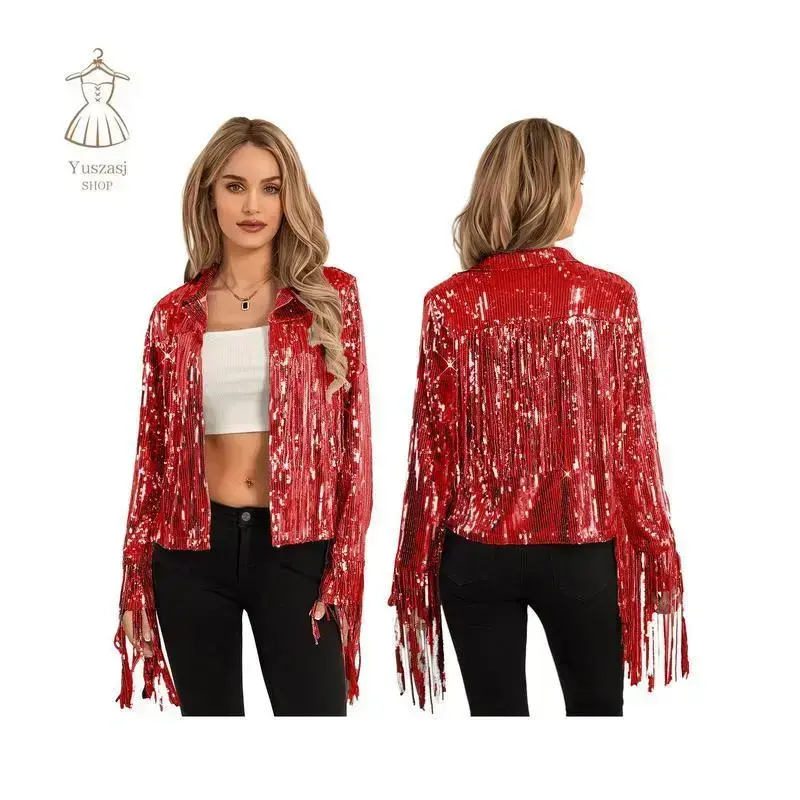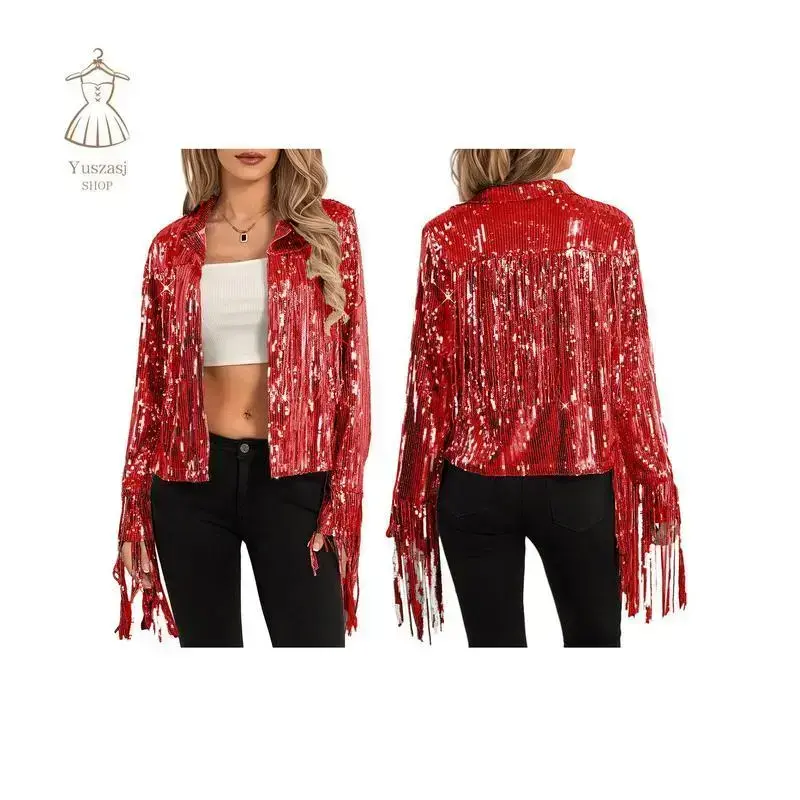 Women Disco Cowgirl Jacket Lightweight Casual Sequin Tassels Long Sleeves Cardigan Coat for Outwear Streetwear/Features/Shiny sequin tassels, long sleeves, lapels, open front; Women's casual jackets; Cardigan jackets for women; Cowgirl jackets for women; Disco jackets women, bring you a fashionable look/Suitable for daily wear, casual, office, party, club, school, work, vacation, dating, shopping, beach, hiking, travel and other outdoor sports/Size (cm)/S Length: 55 Bust: 98 Sleeve: 60 Shoulder: 38/M Length: 56 Bust: 102 Sleeve: 60 Shoulder: 40/L Length: 57 Bust: 106 Sleeve: 60 Shoulder: 42/XL Length: 58 Bust: 110 Sleeve: 60 Shoulder: 44/XXL Length: 59 Bust: 115 Sleeve: 60 Shoulder: 46/XXXL Length: 60 Bust: 120 Sleeve: 60 Shoulder: 48/Size (inch)/S Length: 21.65 Bust: 38.58 Sleeve: 23.62 Shoulder: 14.96/M Length: 22.05 Bust: 40.16 Sleeve: 23.62 Shoulder: 15.75/L Length: 22.44 Bust: 41.73 Sleeve: 23.62 Shoulder: 16.54/XL Length: 22.83 Bust: 43.31 Sleeve: 23.62 Shoulder: 17.32/XXL Length: 23.23 Bust: 45.28 Sleeve: 23.62 Shoulder: 18.11/XXXL Length: 23.62 Bust: 47.24 Sleeve: 23.62 Shoulder: 18.9/Specification/Condition: 100% Brand New/Material: 5% Elastane 95% Polyester/Style: Fashion/Gender: Women/Season: Autumn Spring/Quantity:/Occasion: Daily/Pattern: Sequin Tassels/Package Including:/1* Jacket/Note:/There may be 1-2 cm deviation in different sizes, locations and stretch of fabrics./Size chart is for reference only; there may be a little difference with what you get./Color may be lighter or darker due to the different PC display.