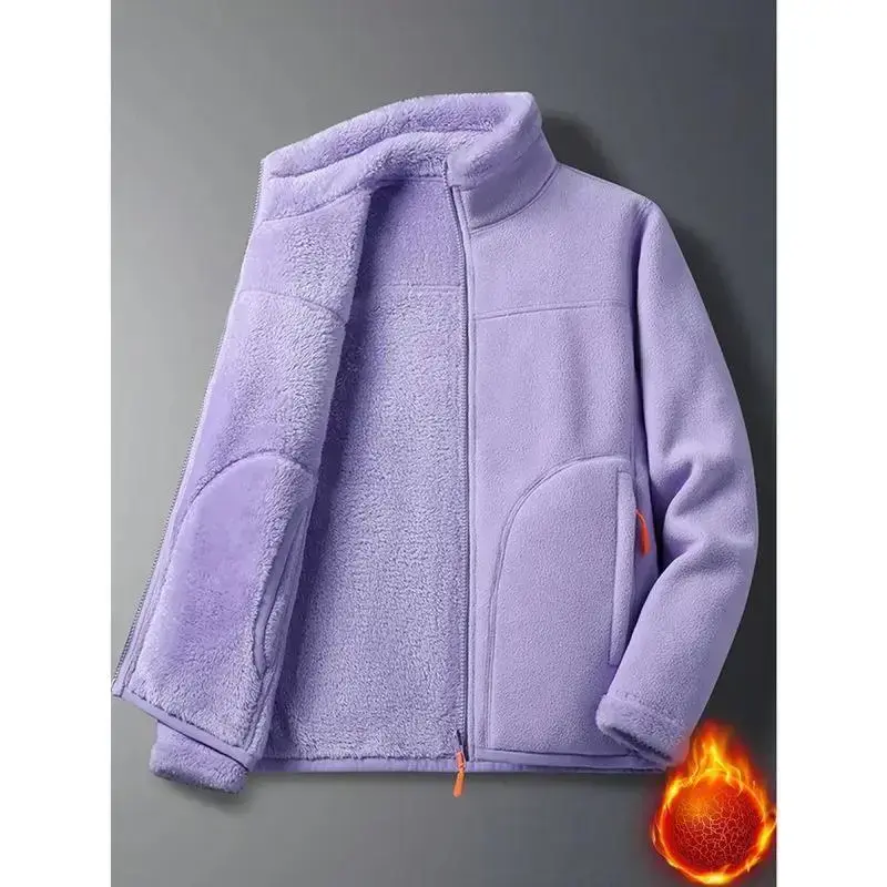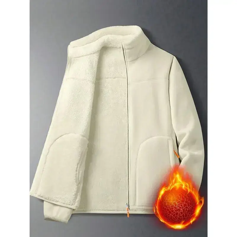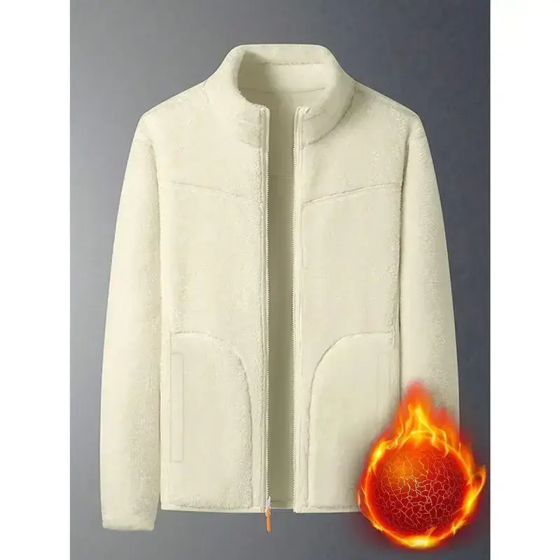 **Product Introduction** This men's or women's fleece jacket comes in a soft off - white color. It features a high - collar design and a full - length zipper for easy wear. The interior is lined with plush, warm fleece, as emphasized by the flame graphic indicating its excellent heat - retention properties. With side pockets, it offers both comfort and functionality, making it ideal for cold weather and casual outdoor activities. Material: PolyesterLength: RegularSleeve Length: Long SleeveDetails: ZipperPattern: Solid colorSheer: NoFabric: Slight StretchCollar Style: Stand CollarType: Windbreaker jacketSeason: Fall/WinterOperation Instruction: Machine wash or professional dry cleanStyle: SportsPrinting Type: No PrintingComposition: 100% PolyesterWeaving Method: Knit FabricItem ID: EK3548565Origin: Fujian,China