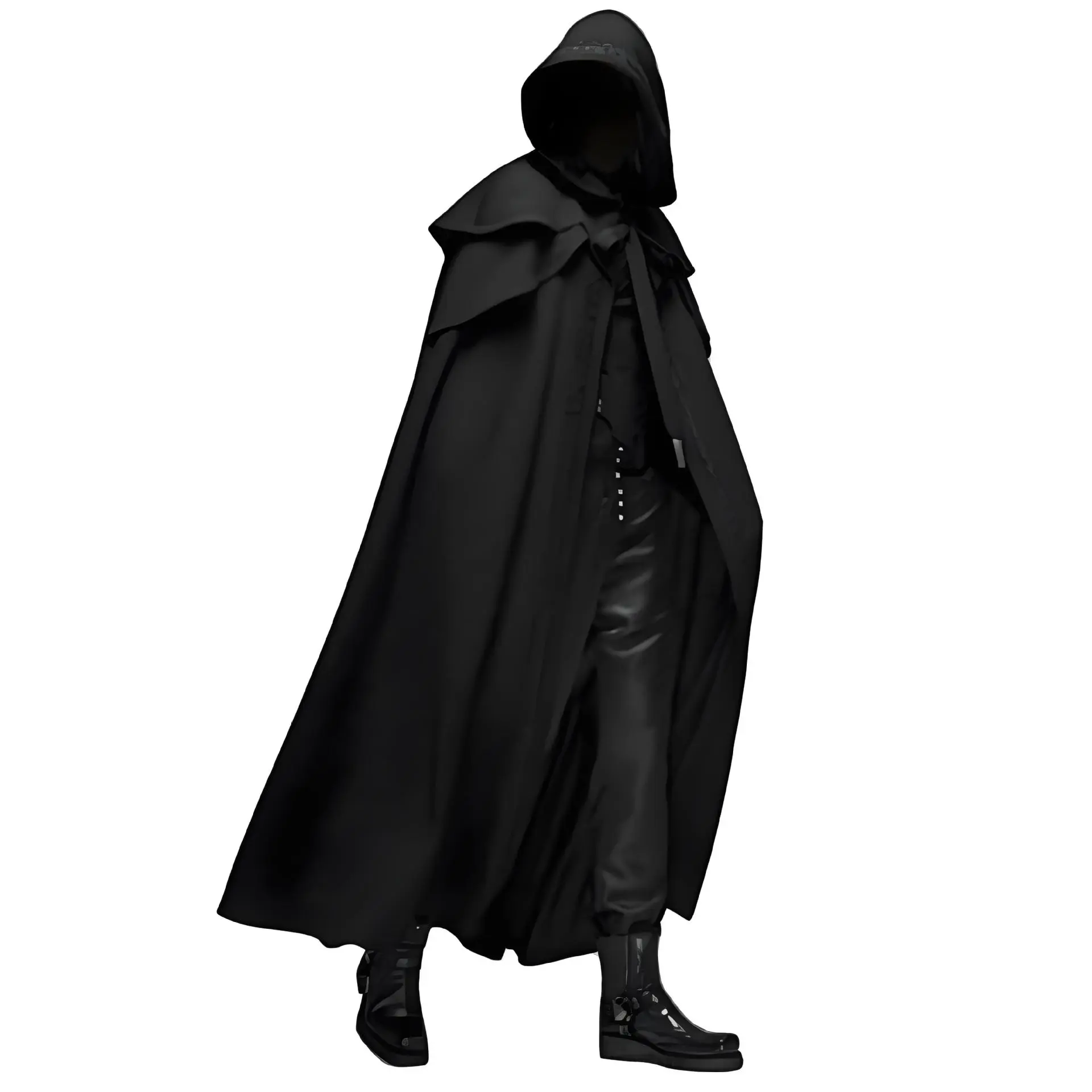 Medieval Vintage Hooded Loose Black Cloak Coats Windproof Trench Chic Winter Long Cape Poncho Mens Monk Cosplay Clothes Costumes Menswear
