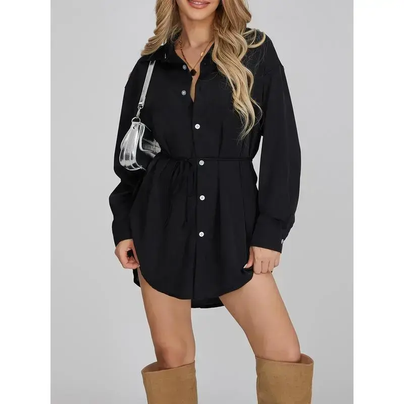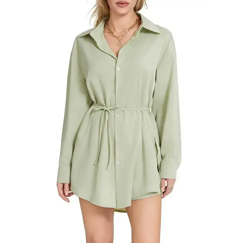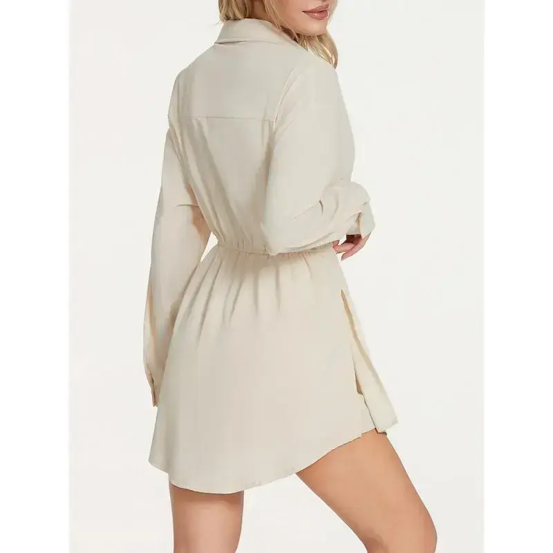 Women's Jumpsuit: Long Sleeve Turn-down Collar Button-down Shirt Bodysuit for Streetwear Womenswear Elegant Dress Shorts Blue Casual Blouse Light