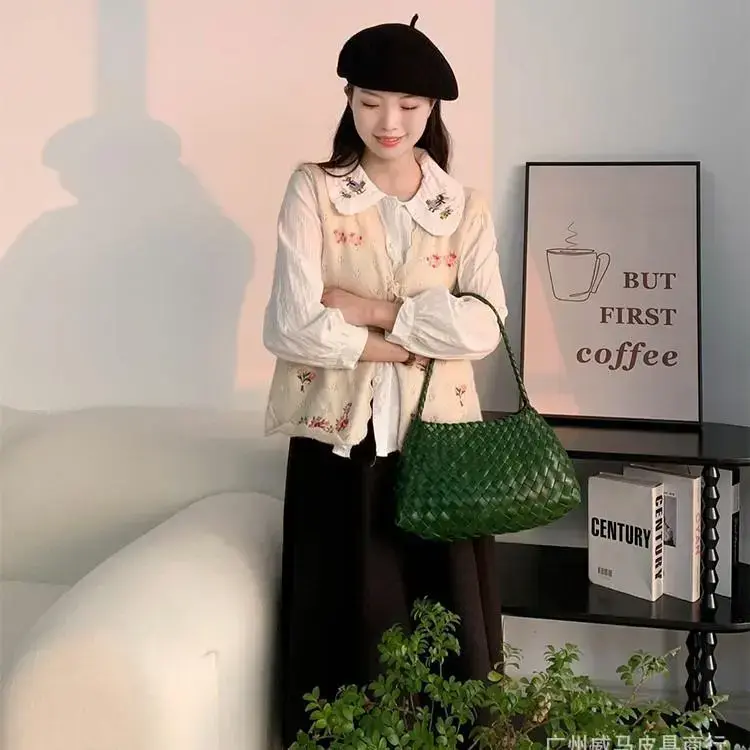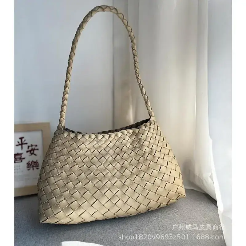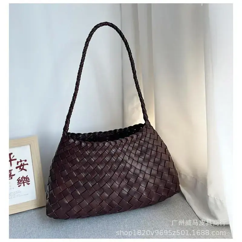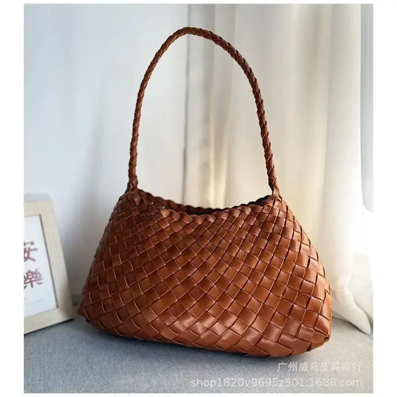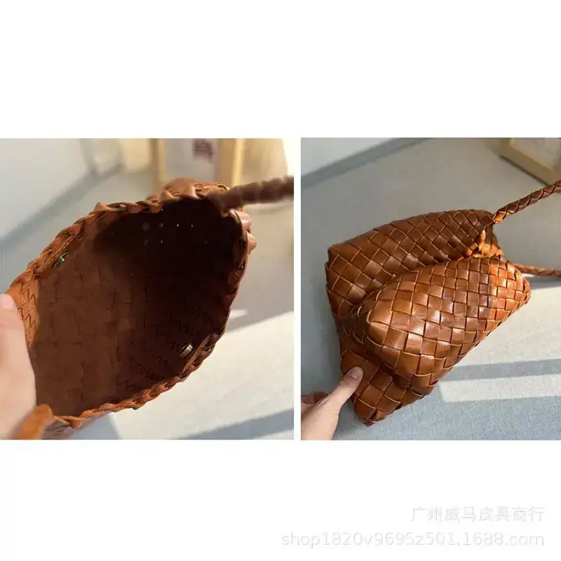 In Stock Rakuten Hot-Selling Women's Genuine Leather Woven Shoulder Bag Fashionable and Unique Top Layer Cowhide Basket Handbag