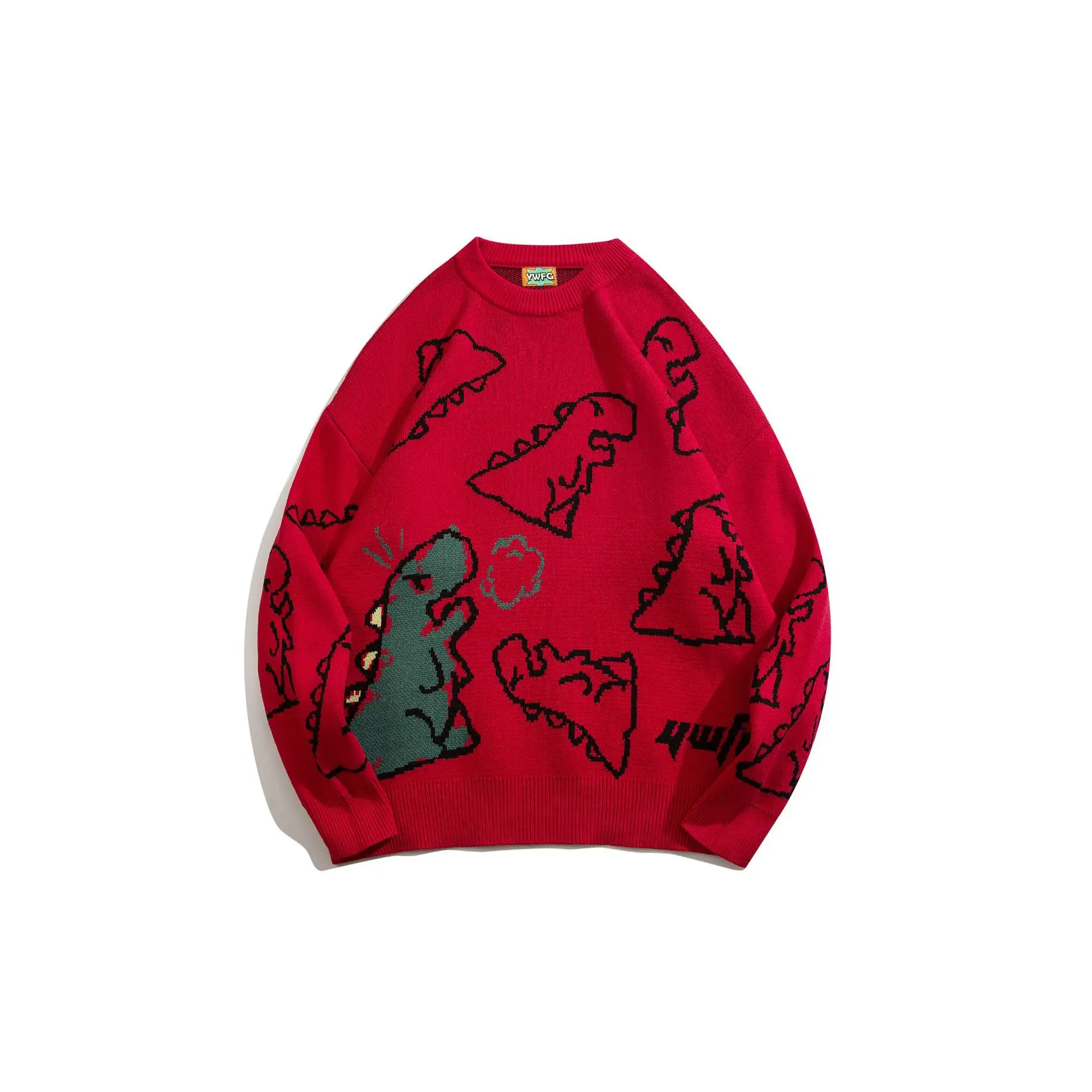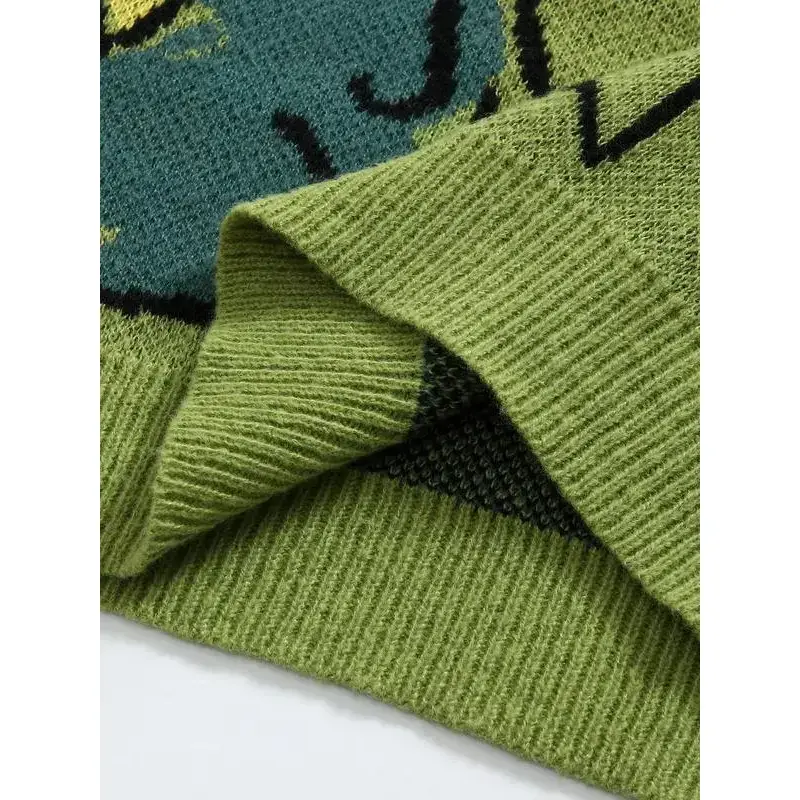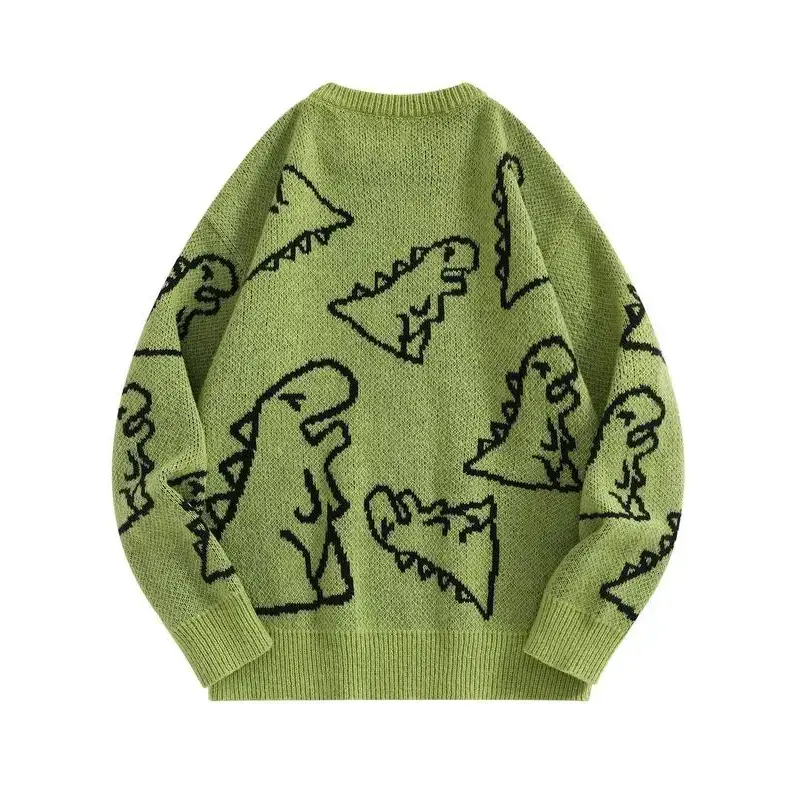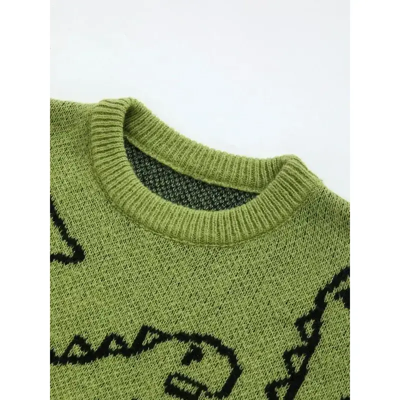 Men'sCartoonDinosaurPrintDropShoulderSweater,RegularFitCasualLongSleeveRoundNeckJumperforFall&Winter,FashionMen'sKnitwearforDailyWear