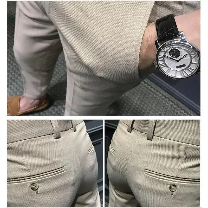 Men's Fashion Slim Fit Comfortable Ankle Length Suit Pants Casual Elastic Soild Small Foot Nine Point Pants Commuting Wear