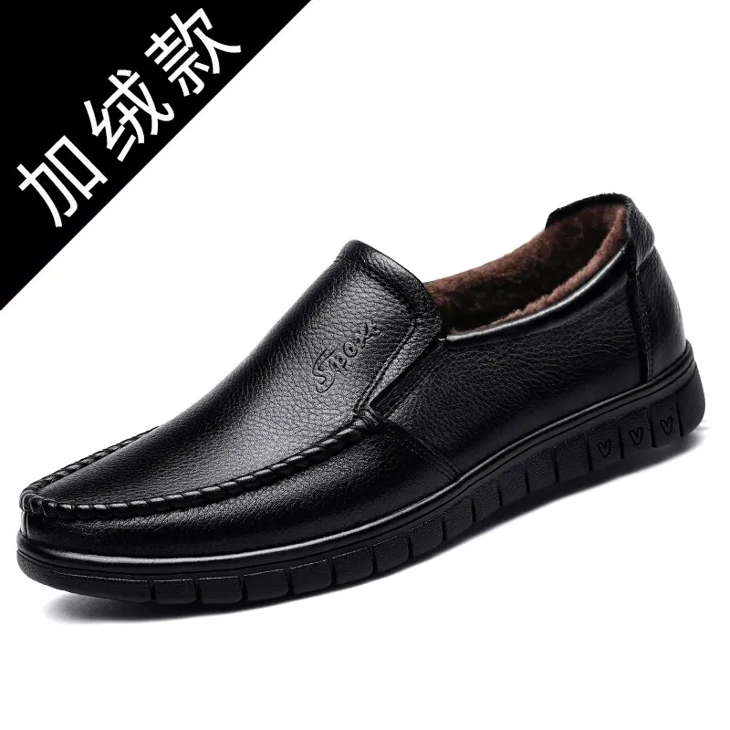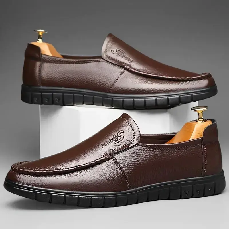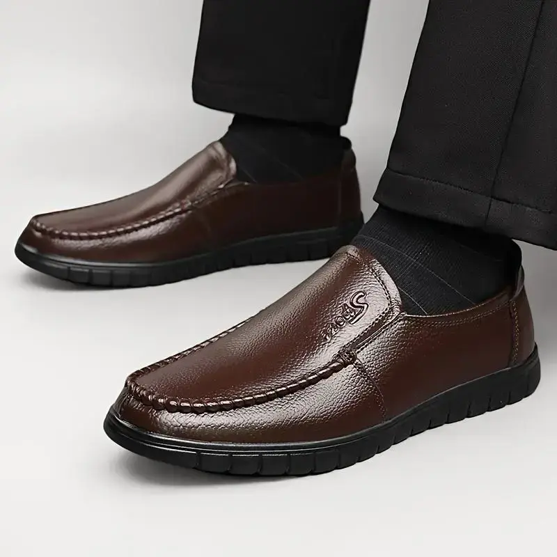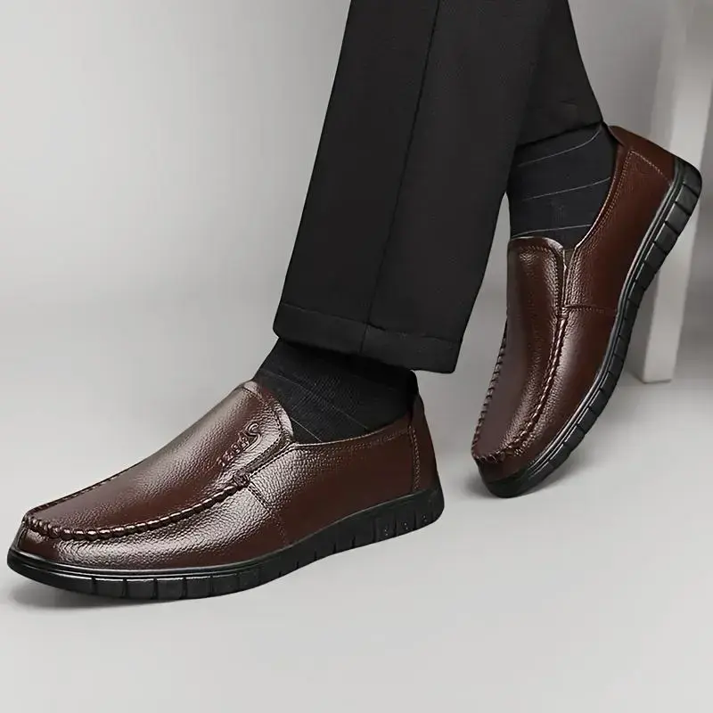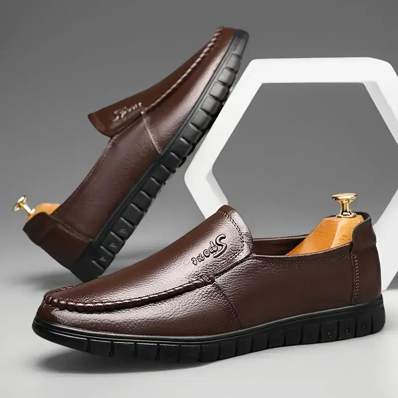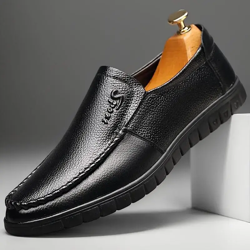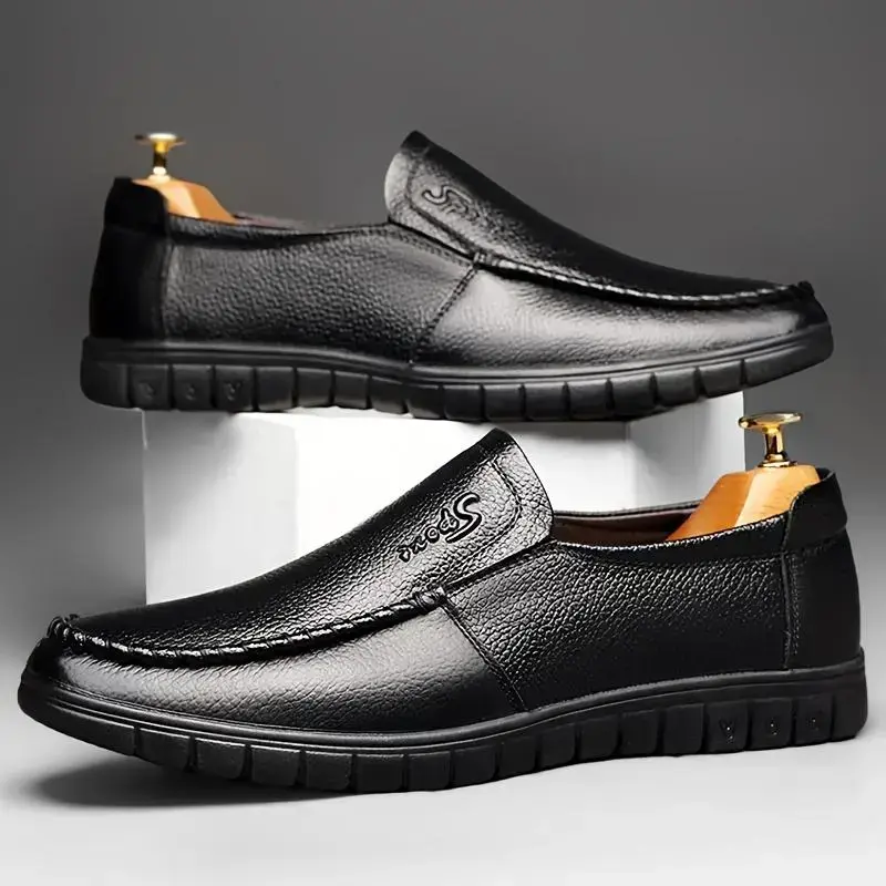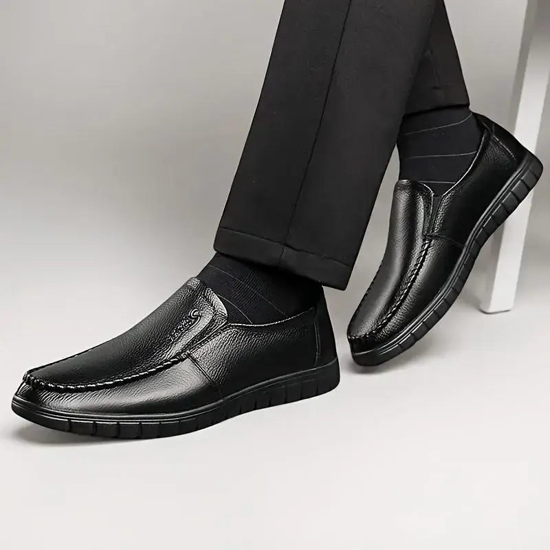Men Genuine Leather Loafers, Slip-On Business Casual Shoes, Non-Slip Rubber Sole, Comfortable Round Toe Design, Suitable for Office and Casual Wear, Black