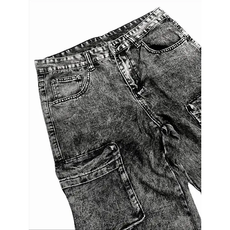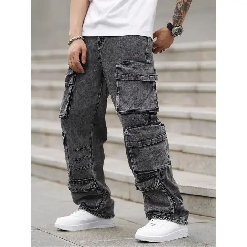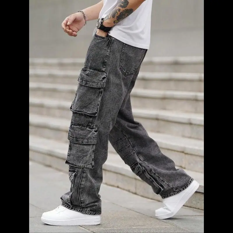 Men's Street Style Washed Wide Leg Cargo Jeans, Loose Fit Street Fashion Casual Comfy Multi-pocket Denim Pants for Daily Wear, Men's Trousers for All Seasons, Streetwear