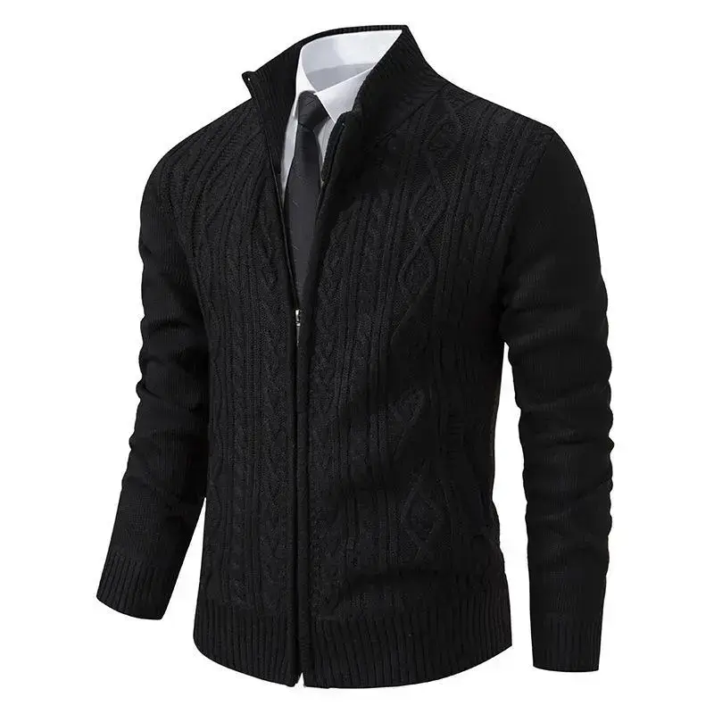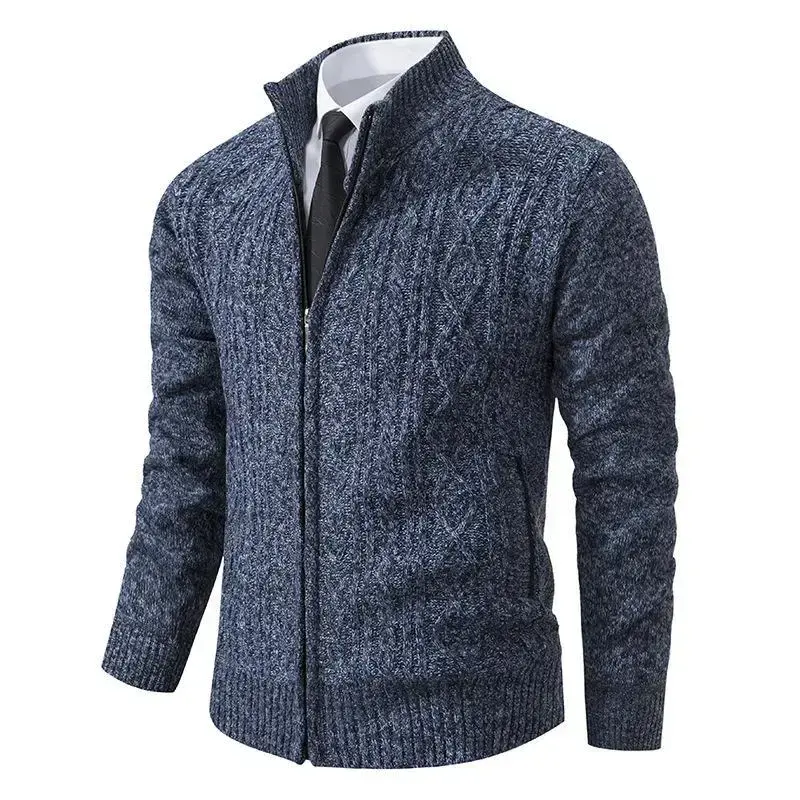Mens Heavy Weight Cardigan Twisted Knit Full-Zipper Sweater