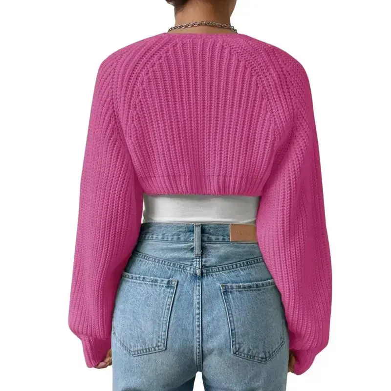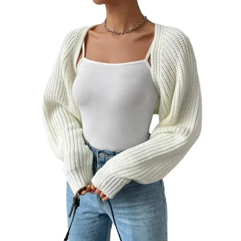 #TikTokShopBacktoSchool Women's Open Front Cropped Cardigan Long Sleeve Solid Color Ribbed Knit Shrug Sweater Bolero Tops Knitwear Womenswear Elegant Underwear knit cardigan