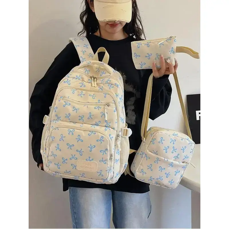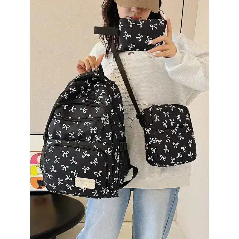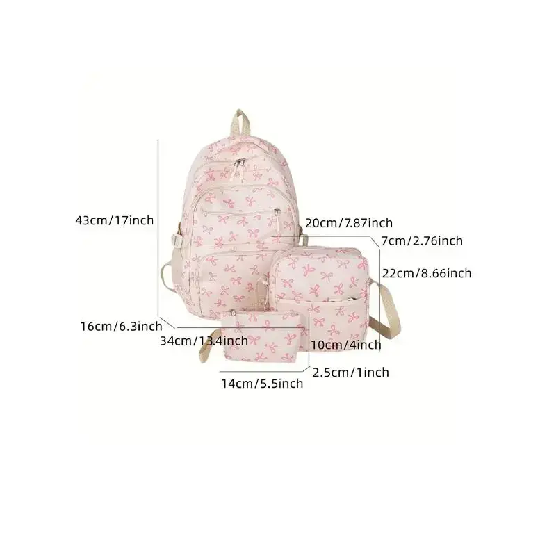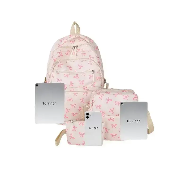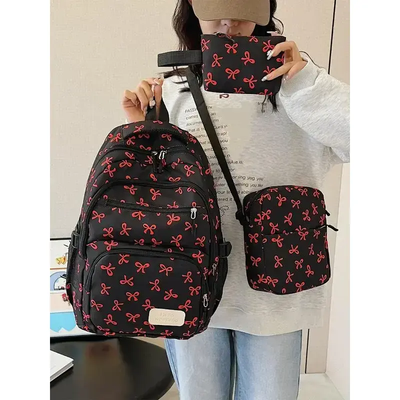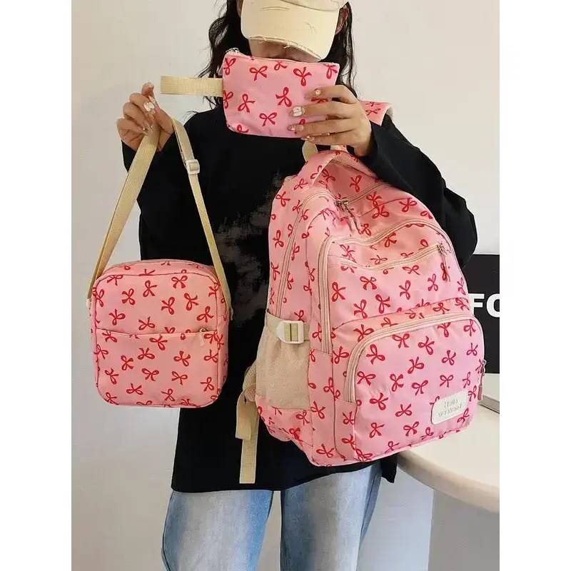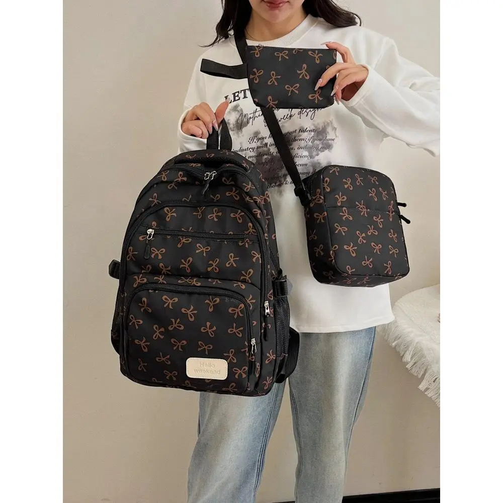 Simple and cute bow pattern women's backpack, stylish design and casual three piece set, suitable for daily use, business trips, and leisure activities
