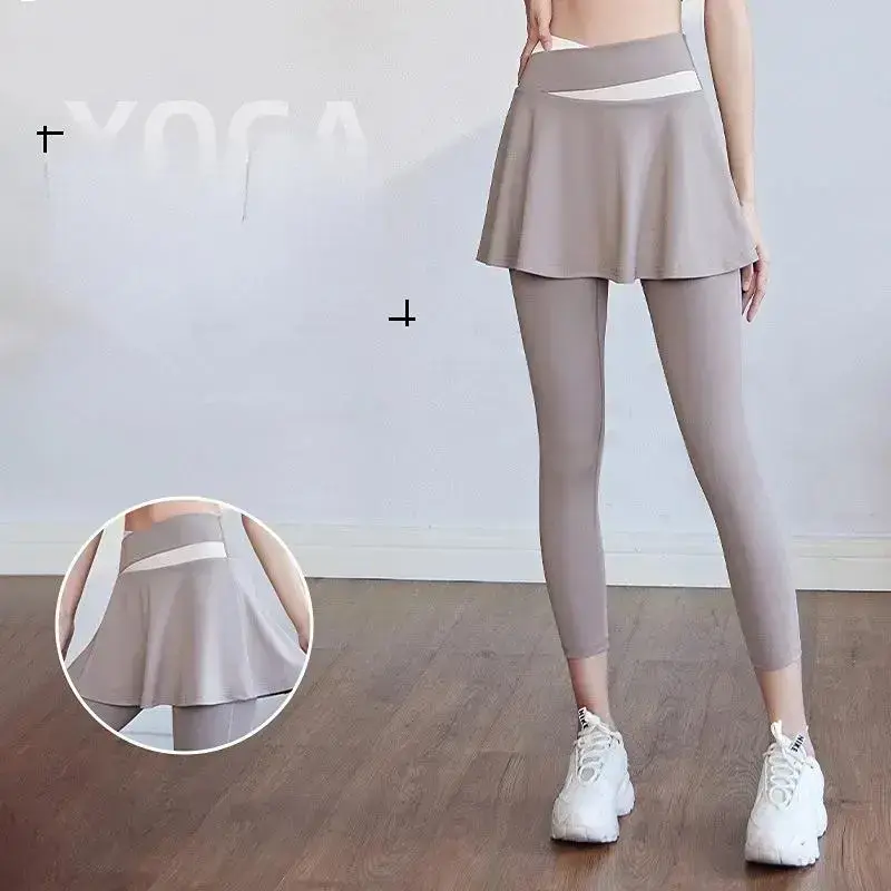 Woman Open Crotch Leggings with Fake Skirt Hidden Zippers Crotchless Panties Elastic Skinny Sport Girl Open Seats Pants Gifts leggings gym outfits workout sets sun protection Breathable Athletic Bottoms High Waist Stretchy