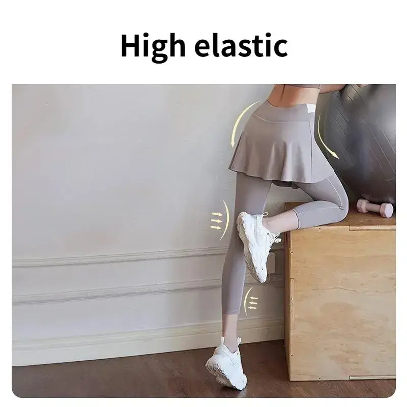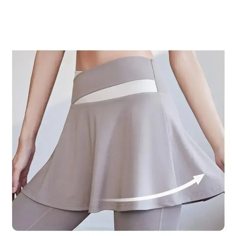 Woman Open Crotch Leggings with Fake Skirt Hidden Zippers Crotchless Panties Elastic Skinny Sport Girl Open Seats Pants Gifts