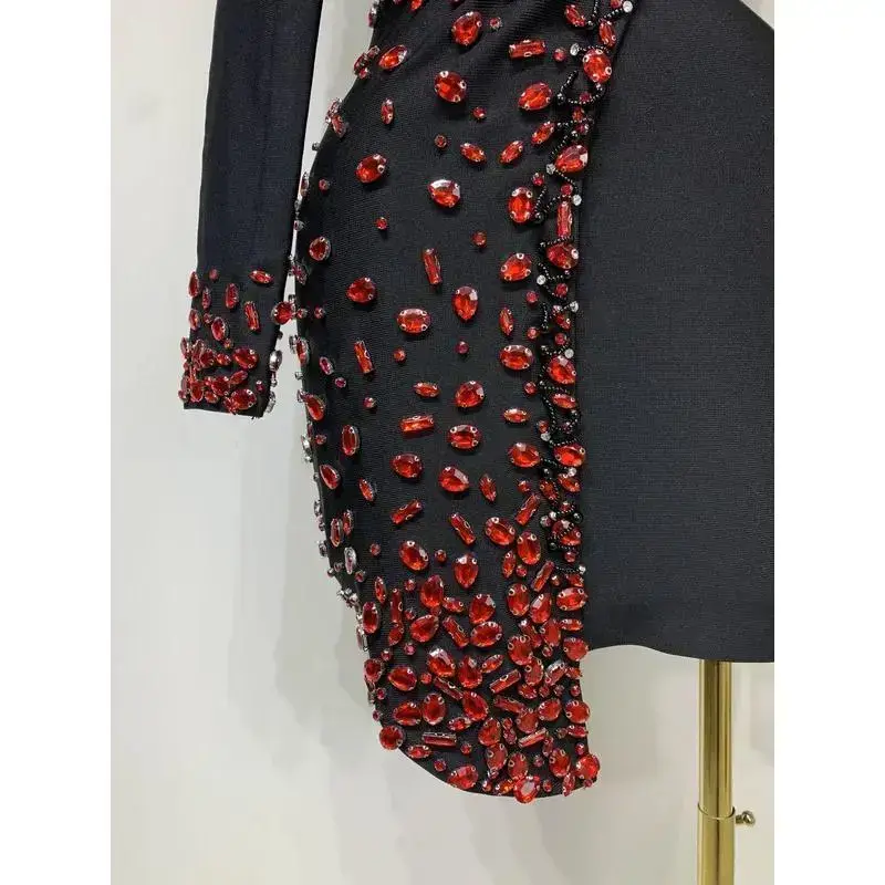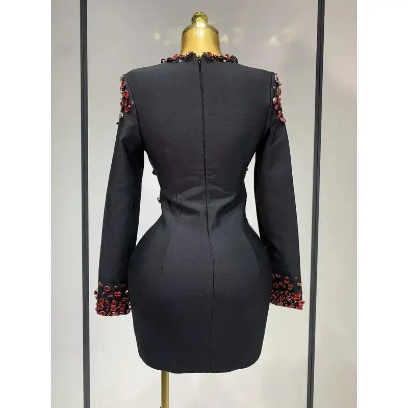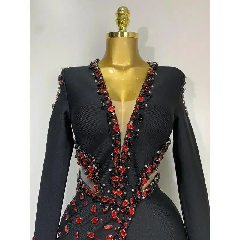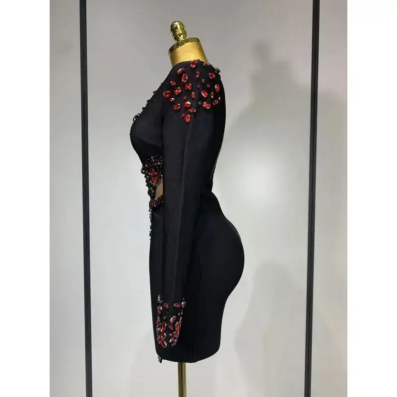 Luxury Birthday Women Celebrity Sexy Long Sleeve V Neck Rhinestone Black Bandage Dress 2025 Elegant Evening Club Party Dresses vibrant day