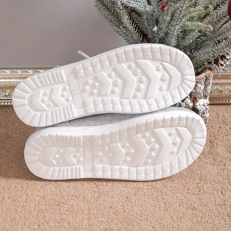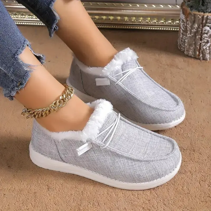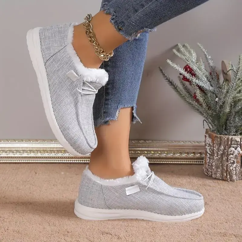 Women's Solid Color Lined Shoes, Slip On Soft Sole Flat Fluffy Canvas Shoesm, Winter Comfy Low-top Shoes