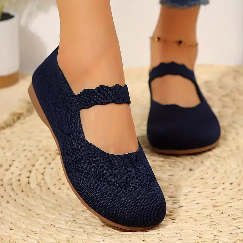 Women's All-Season Knit Mary-Jane Flats ✨ Elegant and Versatile ✨ These Mary-Jane flats are designed for all seasons. They feature a solid color slip-on design with a round toe. The fabric upper and inner provide comfort. The rubber sole ensures durability. Hand washable, these flats are perfect for North America and European special occasions. Style and Fastening These flats combine comfort and style effortlessly.